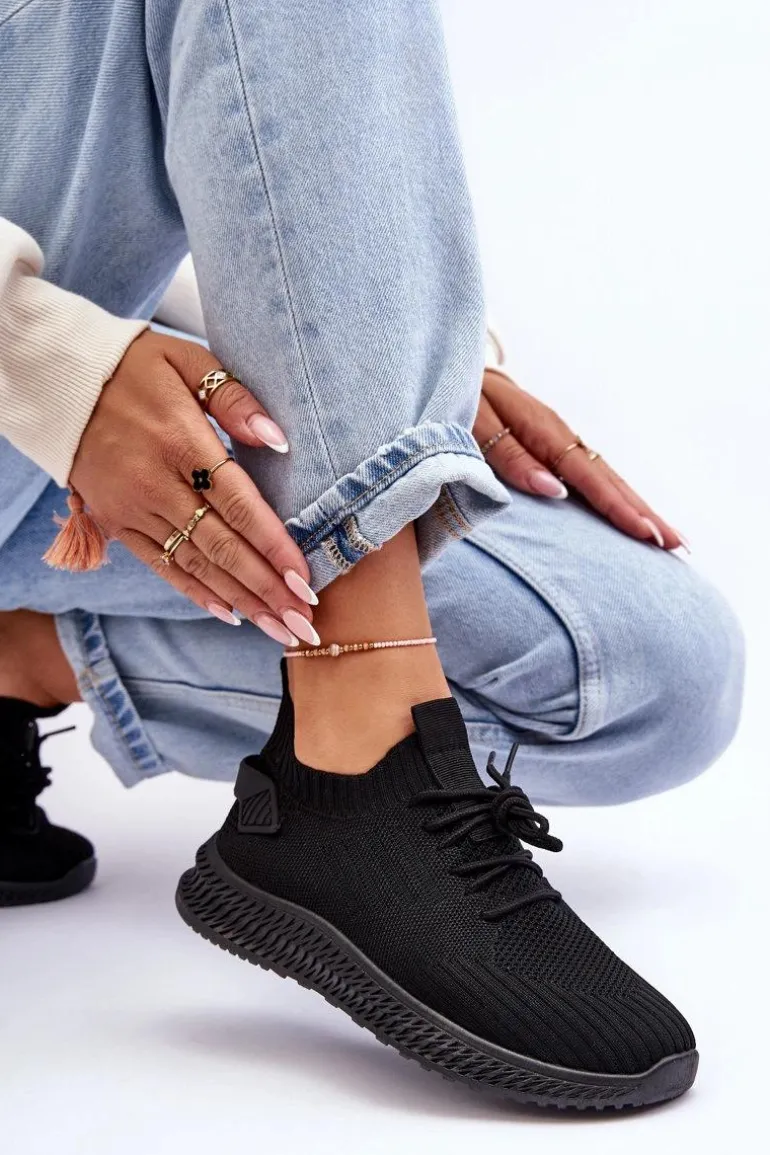 Damskie Wsuwane Materiałowe Buty Sportowe Czarne Zauna