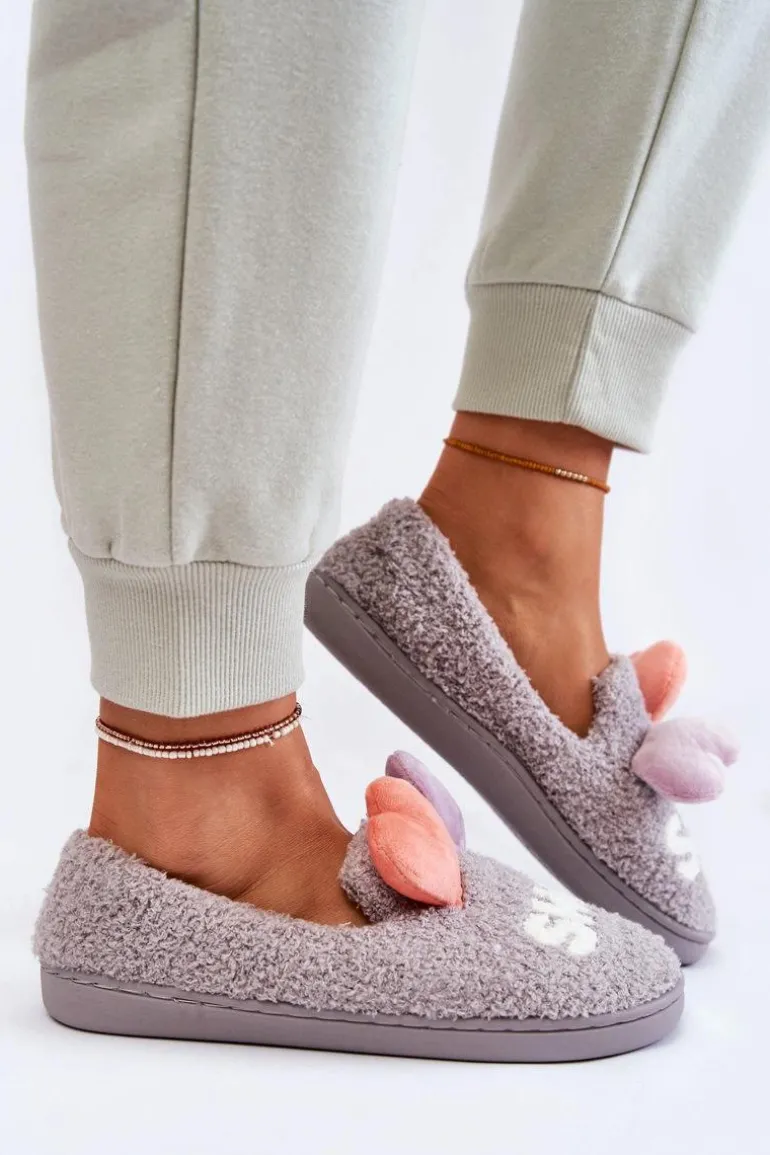 Damskie Wsuwane Papcie Z Sercami Szare Alasca