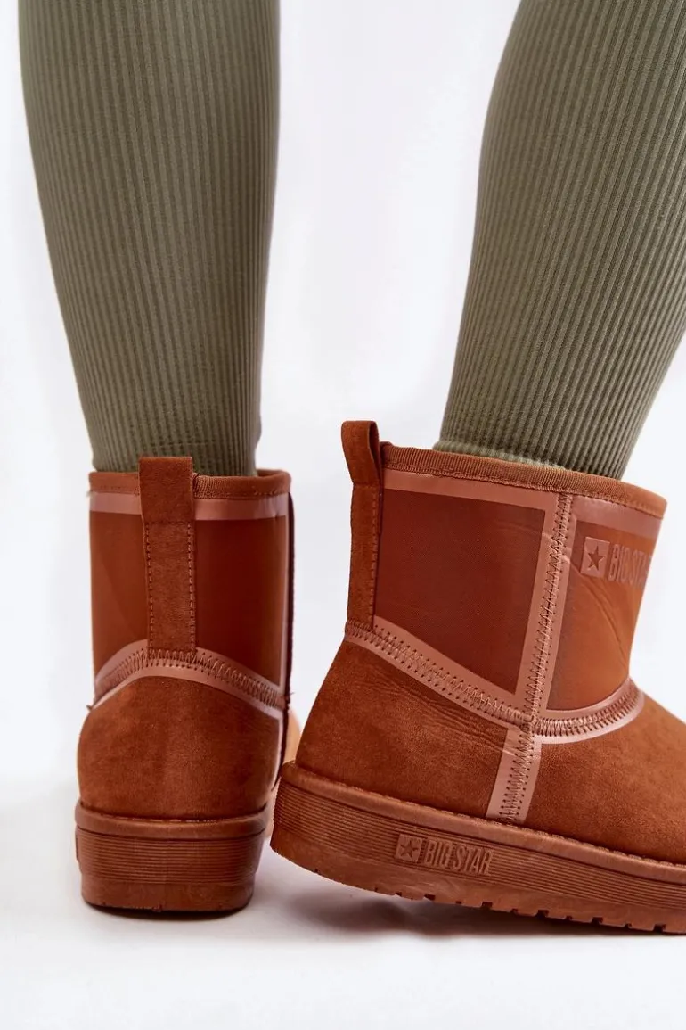 Ciepłe i modne śniegowce od marki Big Star zostały wykonane z połączenia materiału tekstylnego z tworzywem sztucznym. Wnętrze butów zostało ocieplone miłym w dotyku futerkiem. Klasyczny fason, który pasuje do wielu stylizacji. Osadzone na platformie. Na cholewce umieszczono logo marki Big Star. Ten wygodny i ciepły model powinien być Twój! Przy wyborze rozmiaru prosimy sugerować się tabelą rozmiarów.