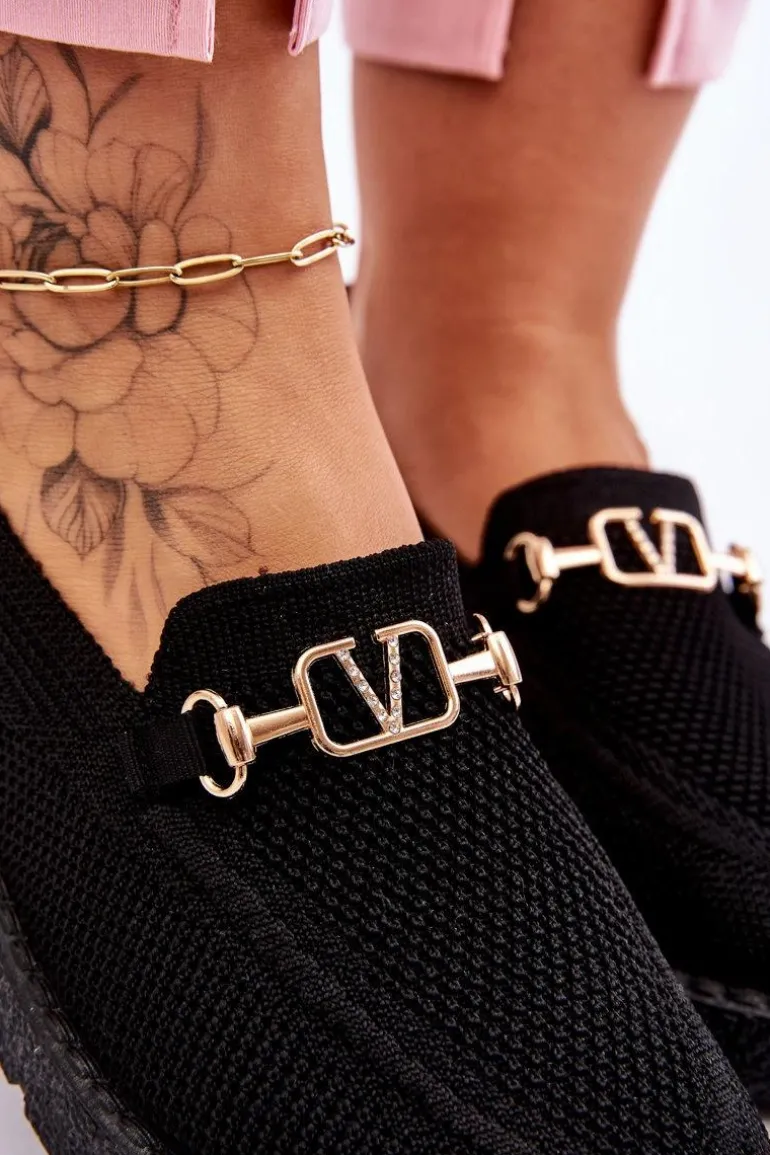Damskie Wsuwane Tenisówki Slip-On Z Ozdobą Czarne Alena