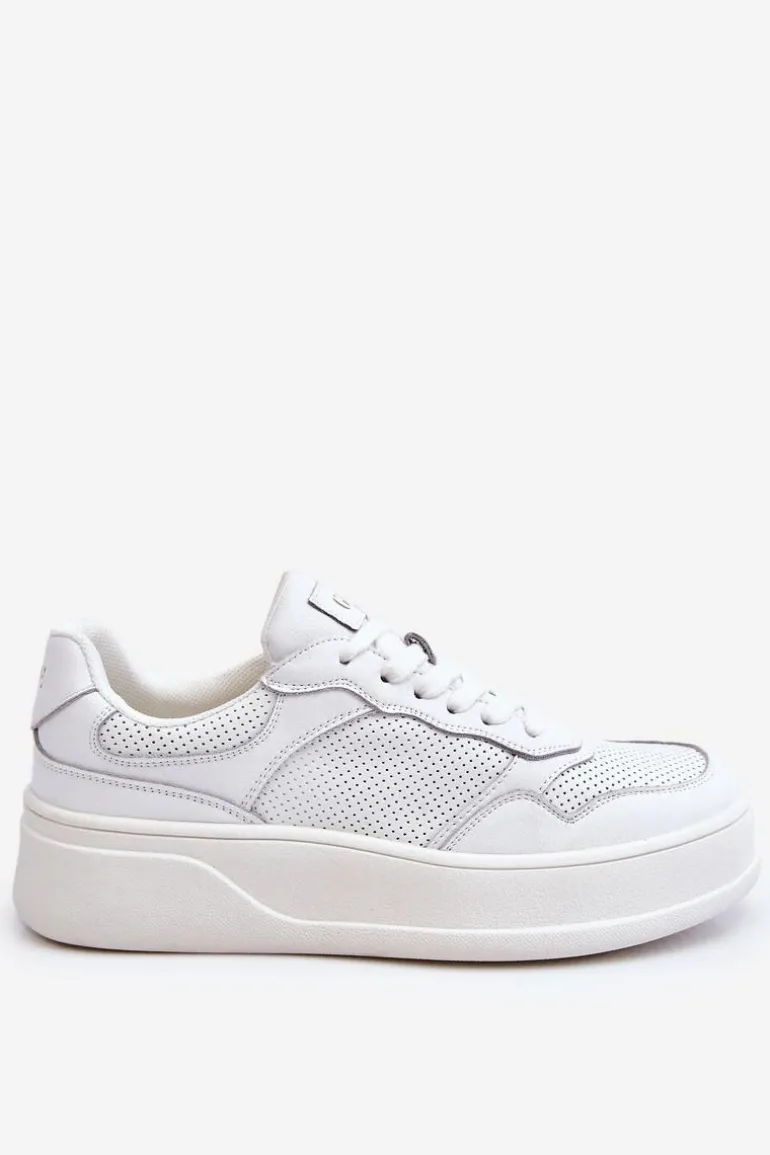 Modne i wygodne buty sportowe marki GOE zostały wykonane z wysokiej jakości skóry naturalnej. Tył cholewki został usztywniony. Miękka, eko skórzana wkładka gwarantuje komfort przez cały dzień. Buty osadzono na platformie z antypoślizgową podeszwą. Klasyczne sznurowanie pozwoli na odpowiednie dopasowanie obuwia do tęgości nogi. Przy wyborze rozmiaru prosimy sugerować się tabelą rozmiarów.