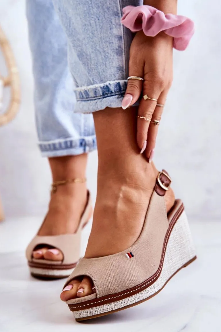 Piękne i wygodne sandały osadzone na obcasie w postaci koturnu. Modny kolor oraz ponadczasowy wzór. Sandały posiadają antypoślizgową podeszwę oraz koturn z plecionki. Wykonane z materiału tekstylnego. Posiadają regulowany pasek zapinany na sprzączkę. Posiadają odkrytą piętę i palce. Wkładka wykonana z połączenia materiału oraz wstawki z eko skóry. Koniecznie sprawdź całą naszą ofertę damskich sandałów! Przy wyborze rozmiaru prosimy sugerować się tabelą rozmiarów.