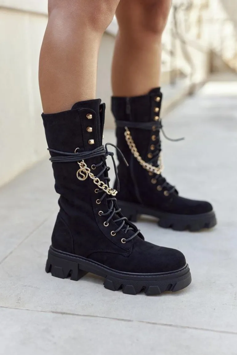 Damskie Wysokie Botki Kozaki Czarne Villes