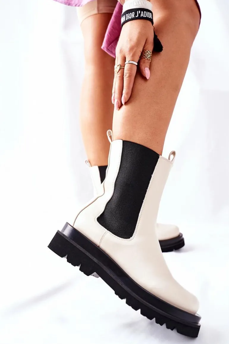 Marzenia stały się rzeczywistością, dzięki naszej najnowszej kolekcji od S.Barski! Nietuzinkowe wzornictwo oraz wysoka jakość wykonania. Prezentowany model został wykonany z najwyższej jakości skóry ekologicznej. Wysoka cholewka z dwoma ściągaczami, zapewnia łatwe zakładanie oraz idealne dopasowanie się do nogi. Gruba podeszwa podkreśla ich styl, a dodatkowo zagwarantuje nam idealną izolację od podłoża, czyniąc te botki jeszcze praktyczniejszymi. Przy wyborze rozmiaru prosimy sugerować się tabelą rozmiarów.
