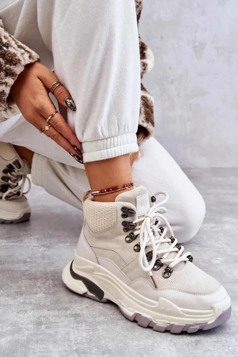 Obuwie sportowe firmy GOE zapewni Ci wygodę i komfort podczas użytkowania. Wykonane z połączenia naturalnego zamszu i naturalnej skóry, a wkładka ze skóry ekologicznej. Model klasycznie sznurowany. Buty te zostały osadzone na masywnej platformie. Wysoka cholewka zapewni stabilizację nogi podczas spacerów czy wycieczek. Ten model powinien znaleźć się właśnie w Twojej szafie! Przy wyborze rozmiaru prosimy sugerować się tabelą rozmiarów.