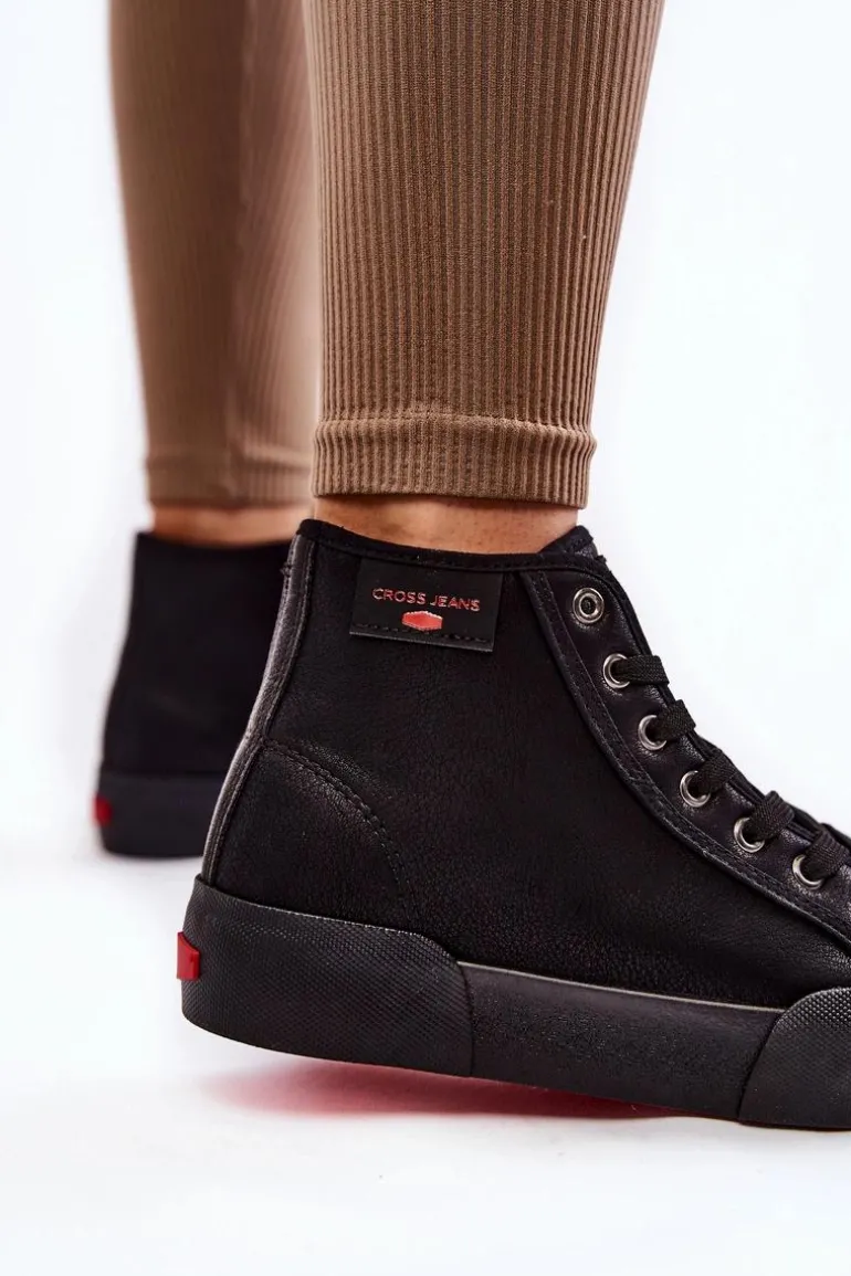 Jeśli szukasz idealnych trampek, to firma Cross Jeans ma coś specjalnego! Wysokie trampki sięgające powyżej kostek. Model klasycznie wiązany z ozdobnym logo na cholewce oraz języku. Dodatkowym atutem jest solidna antypoślizgowa podeszwa. Wykonane ze skóry ekologicznej. Buty zostały ocieplone miękkim kocem obuwniczym. Idealnie uzupełnią wiele jesiennych stylizacji. Musisz je mieć! Przy wyborze rozmiaru prosimy sugerować się tabelą rozmiarów.