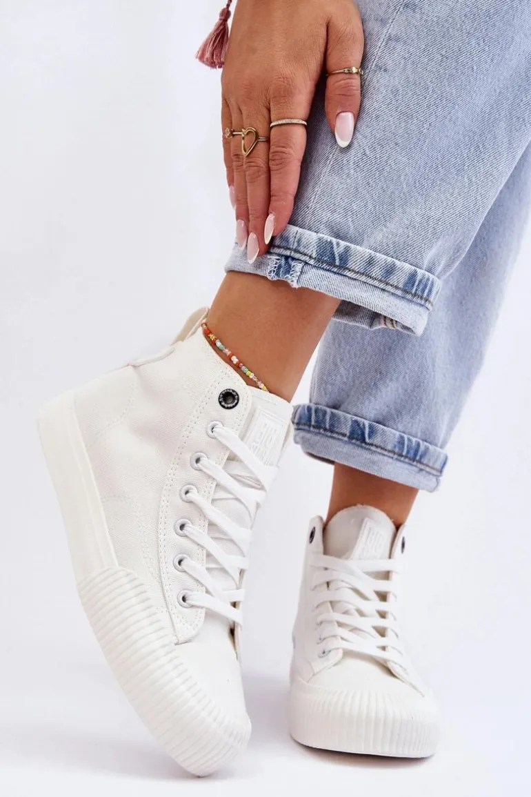 Damskie trampki od polskiej marki BIG STAR z wysoką cholewką za kostkę. Z tyłu posiadają ozdobne logo marki. Buty dobrze dopasowują się do kształtu stopy. Posiadają miękką, materiałową wkładkę. Osadzone na delikatnej platformie z antypoślizgową podeszwą. Model klasycznie sznurowany. Koniecznie sprawdź całą naszą kolekcję butów marki BIG STAR. Przy wyborze rozmiaru prosimy sugerować się tabelą rozmiarów.