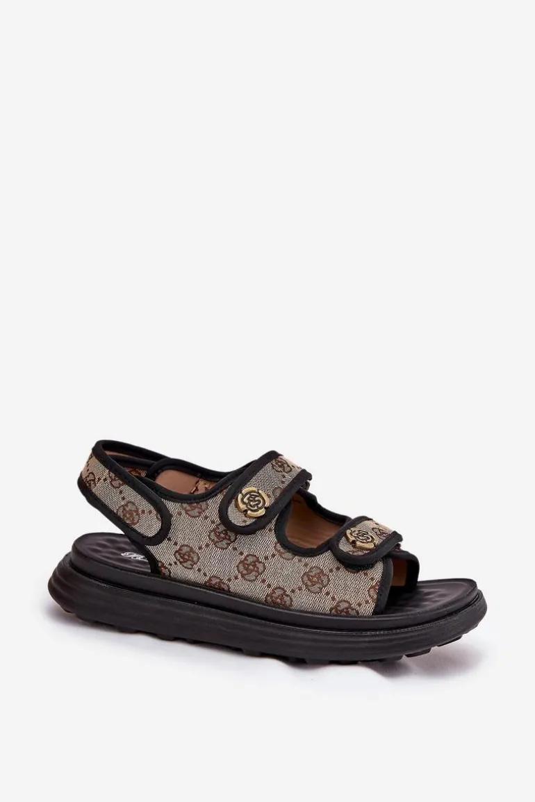 Stylowe sandały damskie z materiału tekstylnego, wyróżniające się wzorzystą cholewką, która nadaje im unikalnego charakteru. Zapinane na trzy rzepy, umożliwiają doskonałe dopasowanie do stopy. Ozdobne detale dodają elegancji i modowego akcentu. Osadzone na platformie, zapewniają komfort i stabilność przez cały dzień. Dzięki miękkiej wkładce sandały gwarantują wygodę, czyniąc je idealnym wyborem na ciepłe dni i letnie stylizacje. Przy wyborze rozmiaru prosimy sugerować się tabelą rozmiarów.
