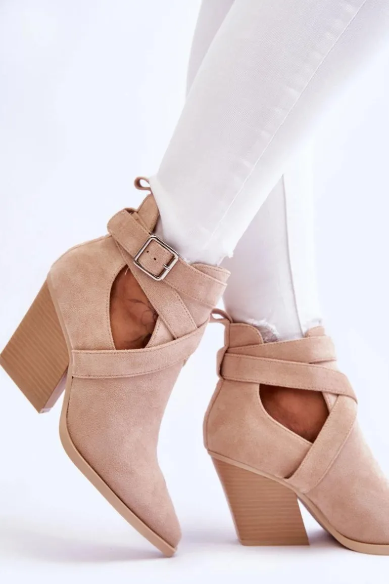 Botki o fasonie kowbojek zostały wykonane z miękkiego eko zamszu. Dodatkowo posiadają usztywniany zapiętek. Buty zostały osadzone na obcasie w postaci słupka. Cholewka z wycięciami po bokach jest charakterystyczna dla tego modelu. Te botki będą świetnym uzupełnieniem wielu stylizacji. Przy wyborze rozmiaru prosimy sugerować się tabelą rozmiarów.