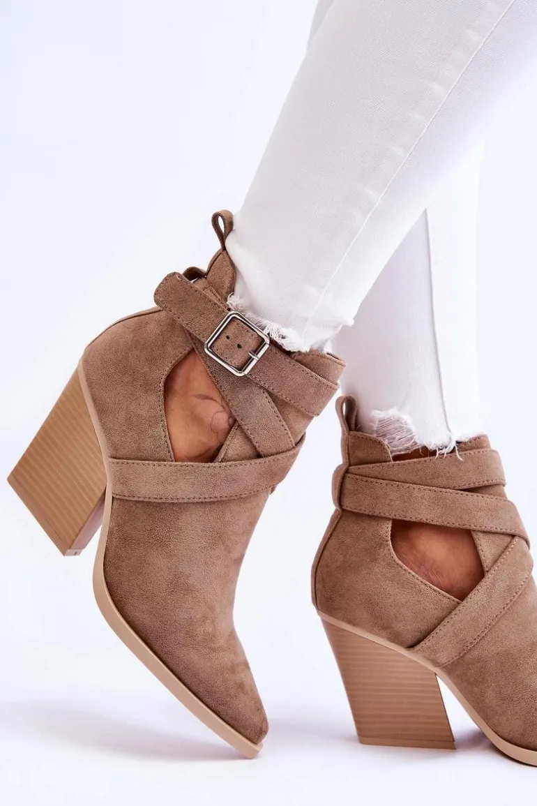 Botki o fasonie kowbojek zostały wykonane z miękkiego eko zamszu. Dodatkowo posiadają usztywniany zapiętek. Buty zostały osadzone na obcasie w postaci słupka. Cholewka z wycięciami po bokach jest charakterystyczna dla tego modelu. Te botki będą świetnym uzupełnieniem wielu stylizacji. Przy wyborze rozmiaru prosimy sugerować się tabelą rozmiarów.