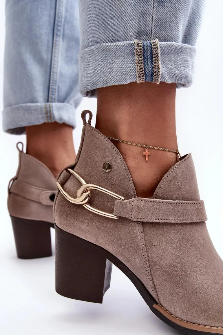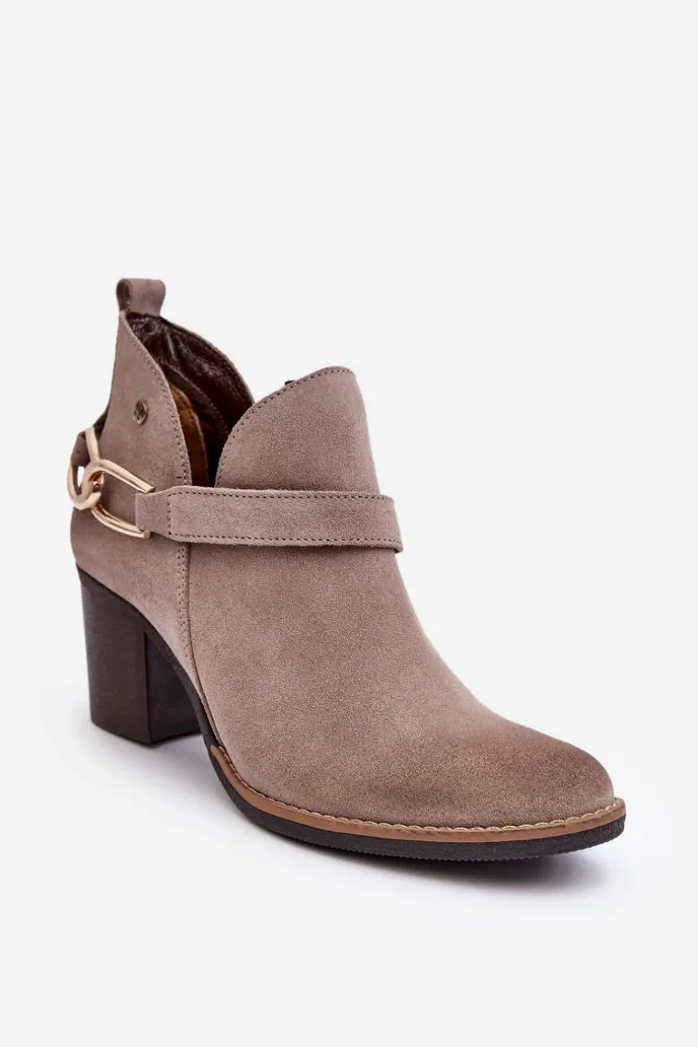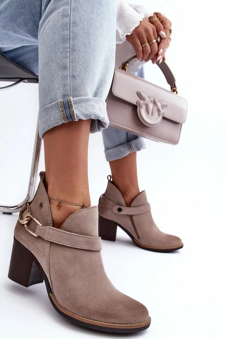 36-23,5/37-24,5/38-25/39-26/40-26,5/41-27 cmDamskie Zamszowe Botki Na Obcasie Maciejka 06247-04 Beżowe