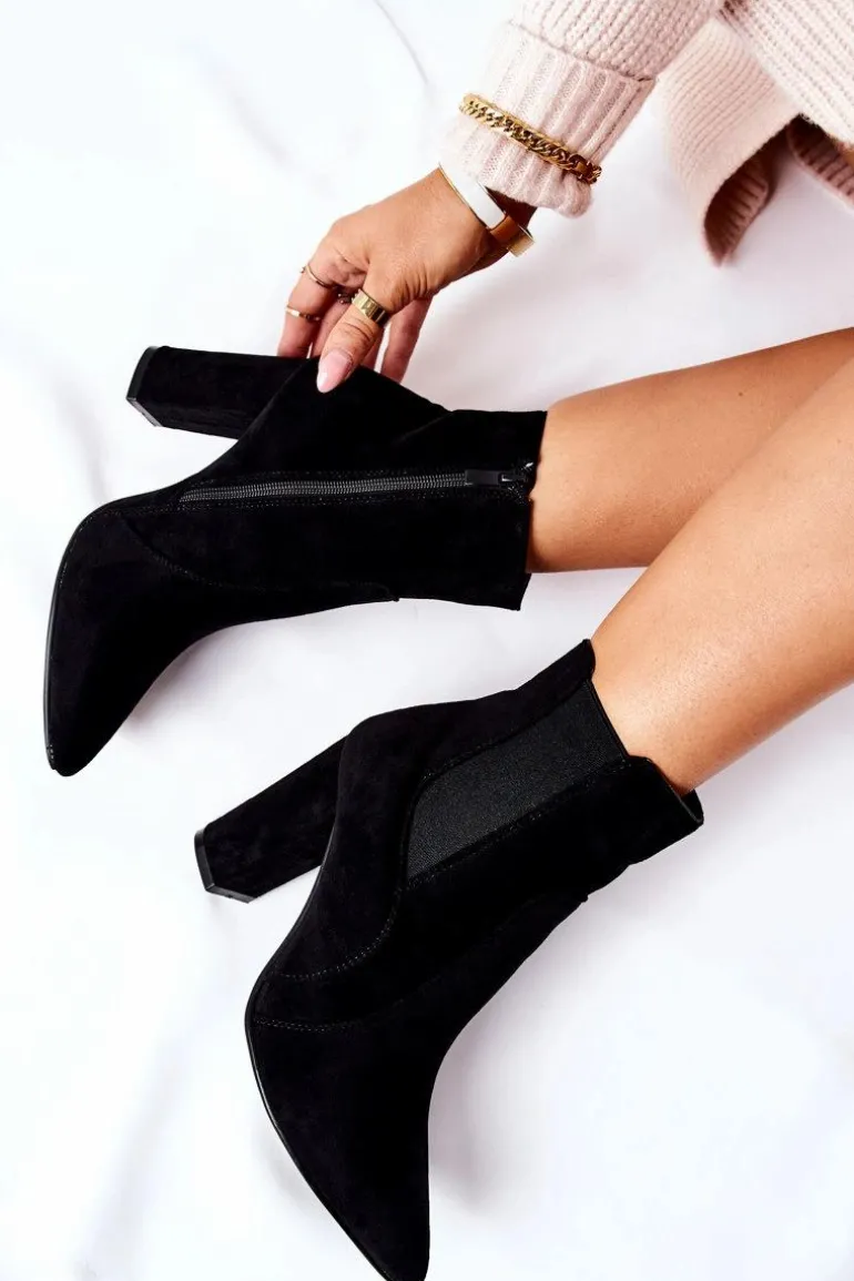 Damskie Zamszowe Botki Na Słupku Czarne Kastren