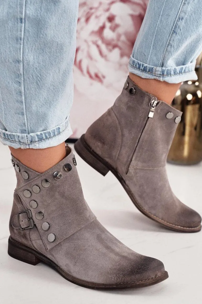 Damskie Zamszowe Botki Z Klamrą Exquisite 1198 Cappuccino