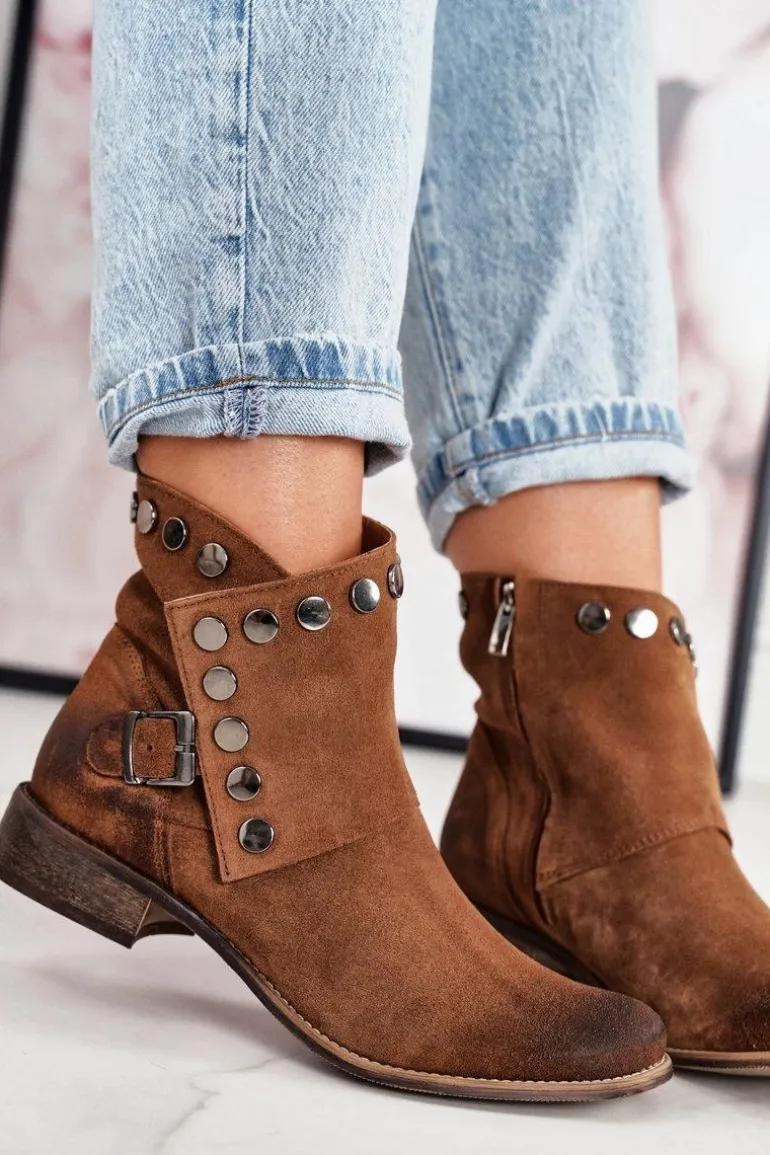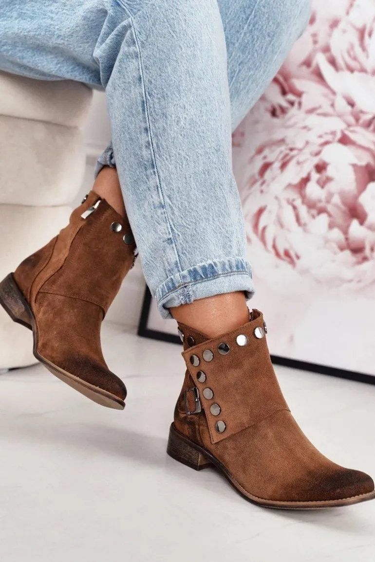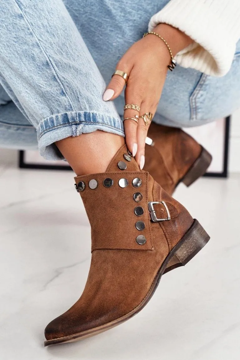 Damskie Zamszowe Botki Z Klamrą Exquisite 1198 Koniak