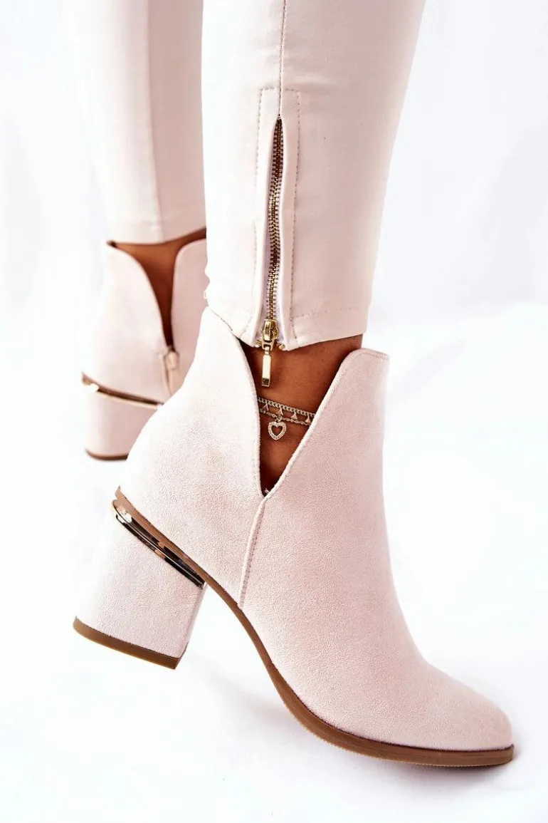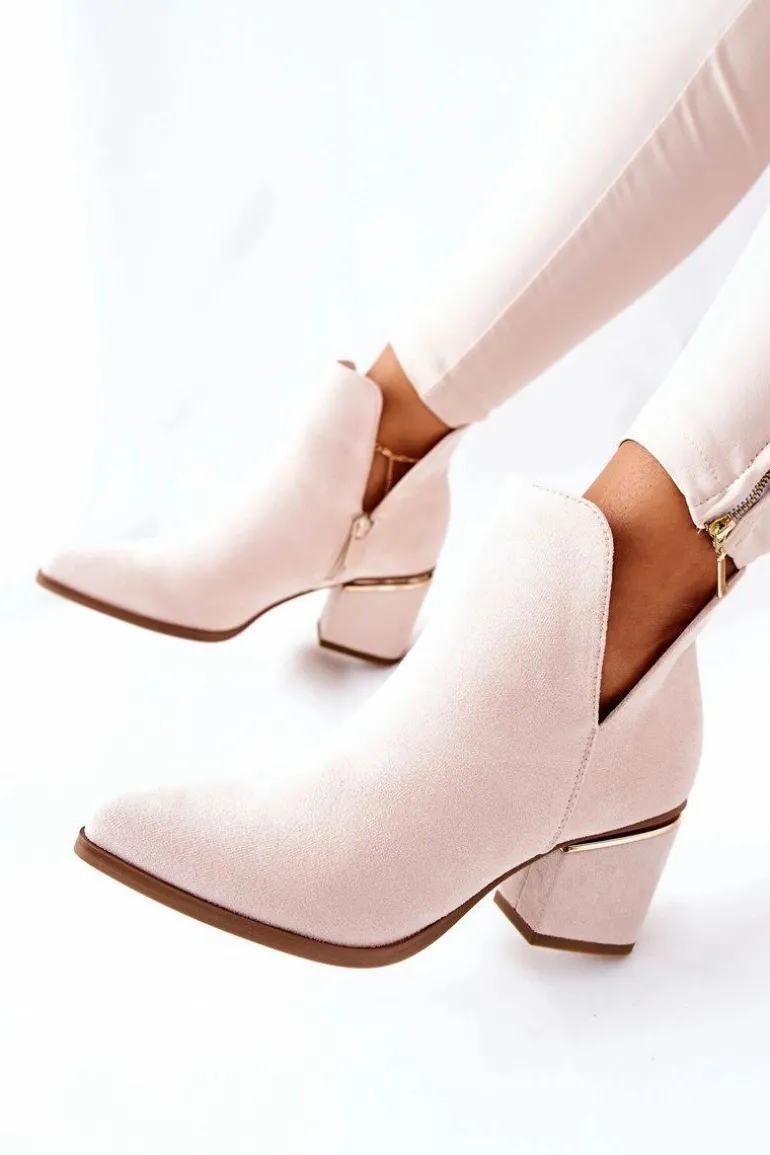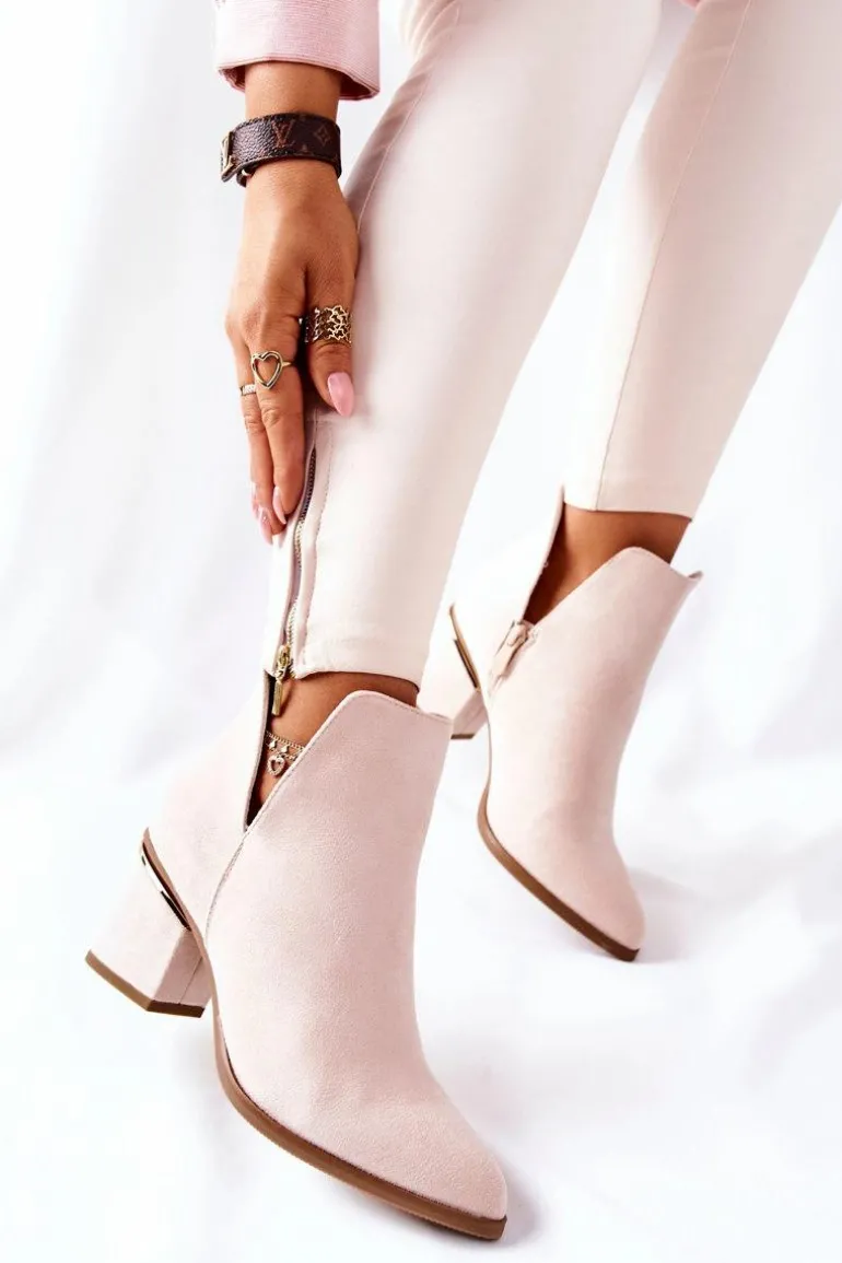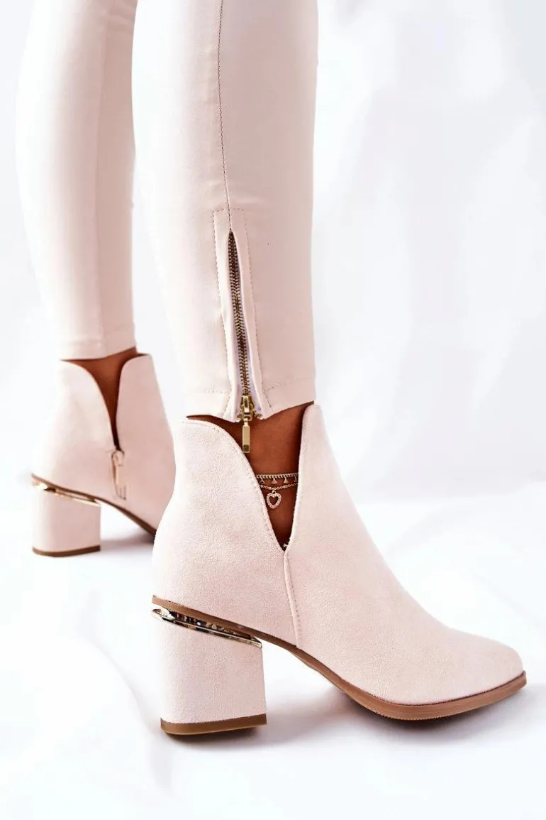 Damskie Zamszowe Botki Z Wycięciami Beżowe Noel