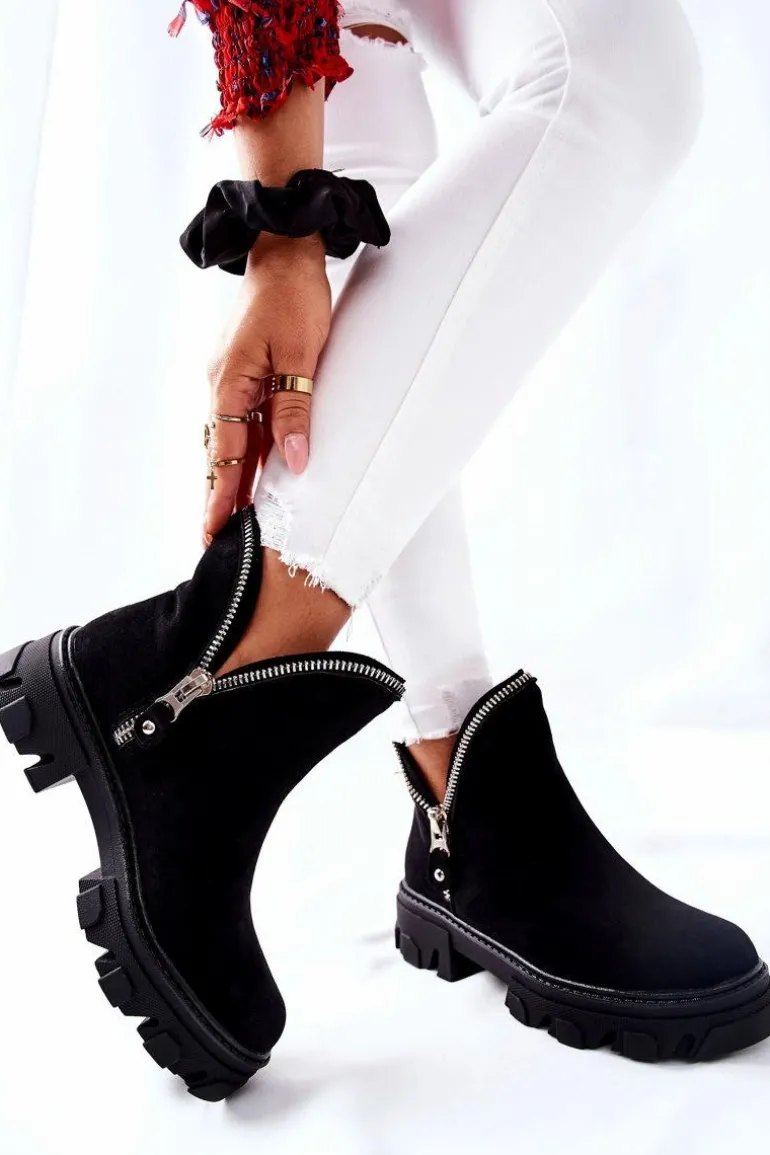 Niesamowite botki, które z pewnością wpadną w oko! To właśnie z tymi botkami stworzysz niesamowite zestawienia stylistyczne. Botki zdobione suwakami wokół cholewki. Gruba podeszwa to ich kolejny atut. Przy wyborze rozmiaru prosimy sugerować się tabelą rozmiarów.