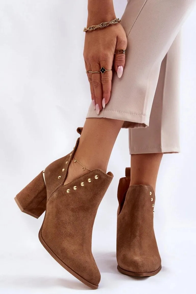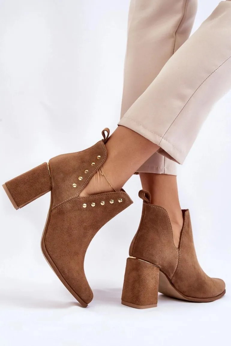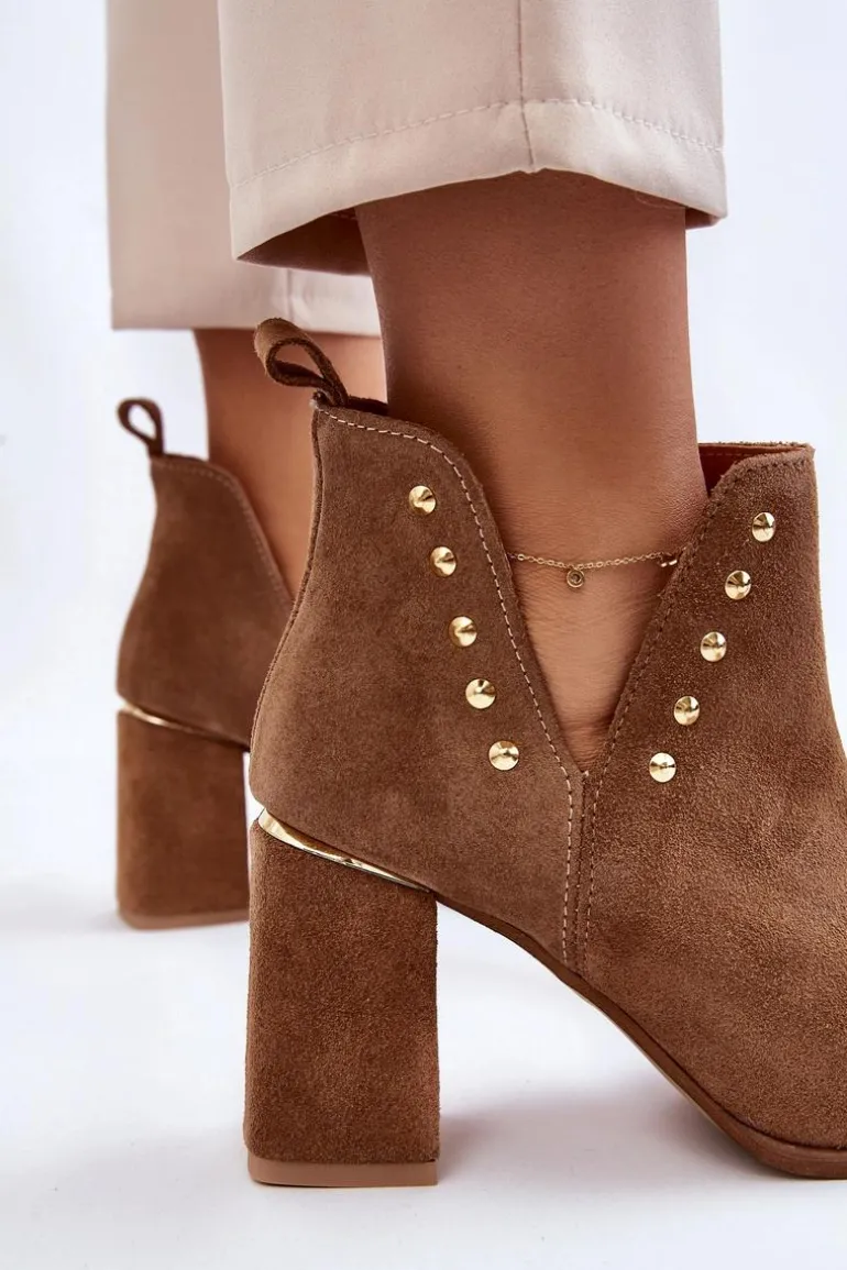 Botki to nieodłączny element jesienno-zimowych stylizacji. Firma Lewski ma propozycje na każdy sezon. Prezentowany model dzięki delikatnym wycięciom, idealnie sprawdzi się podczas jesiennych stylizacji. Zdobienia na cholewce w postaci złotych dżetów oraz złotej wstawki na obcasie, podkreśla ich elegancki styl. Botki w całości zostały wykonane z naturalnego zamszu. Przy wyborze rozmiaru prosimy sugerować się tabelą rozmiarów.