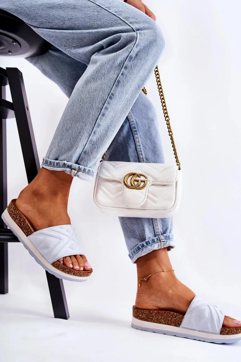 Modne klapki damskie wykonane z miłego w dotyku eko zamszu. Model osadzone na masywnej korkowej platformie z podeszwą z tworzywa sztucznego. Wkładka jest profilowana i także wykonana z eko zamszu, która zapewni komfort podczas użytkowania. Model z odkrytym noskiem. Świetny fason na upalne dni, który powinnaś mieć w swojej szafie! Przy wyborze rozmiaru prosimy sugerować się tabelą rozmiarów.