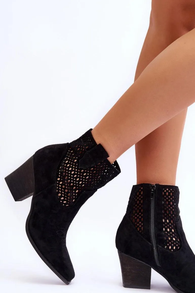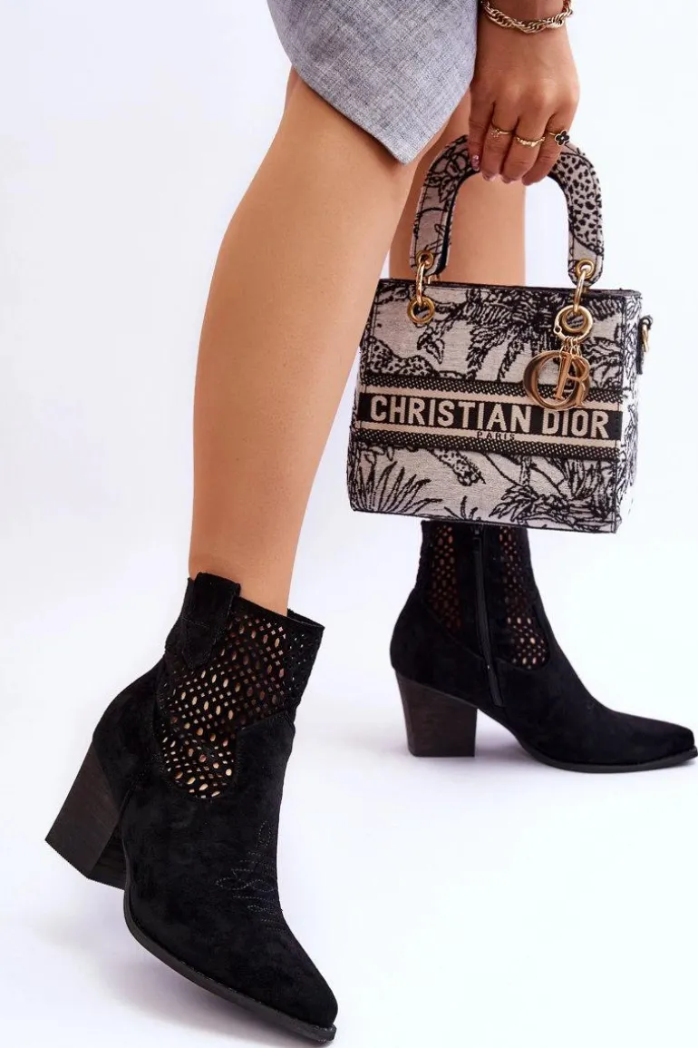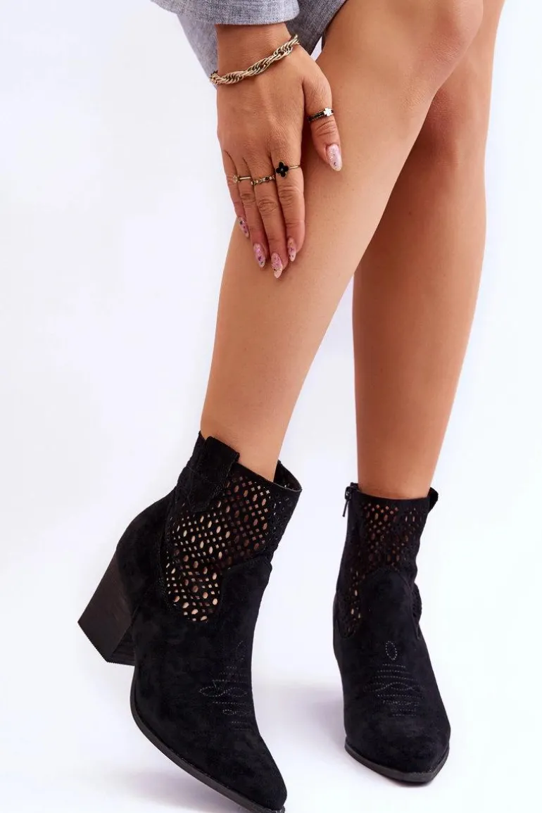 Damskie Zamszowe Kowbojki Botki Na Słupku Czarne Norvella