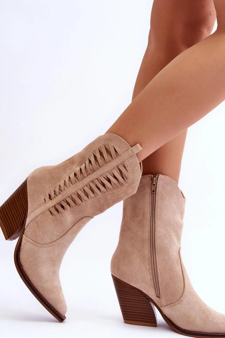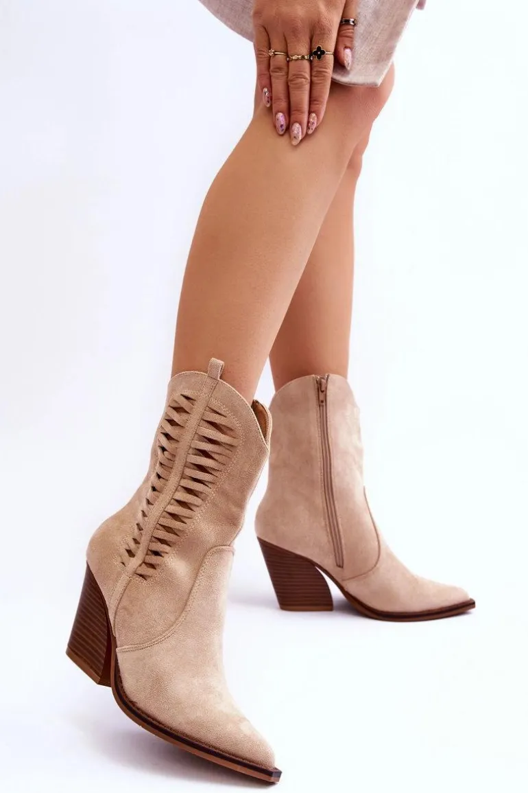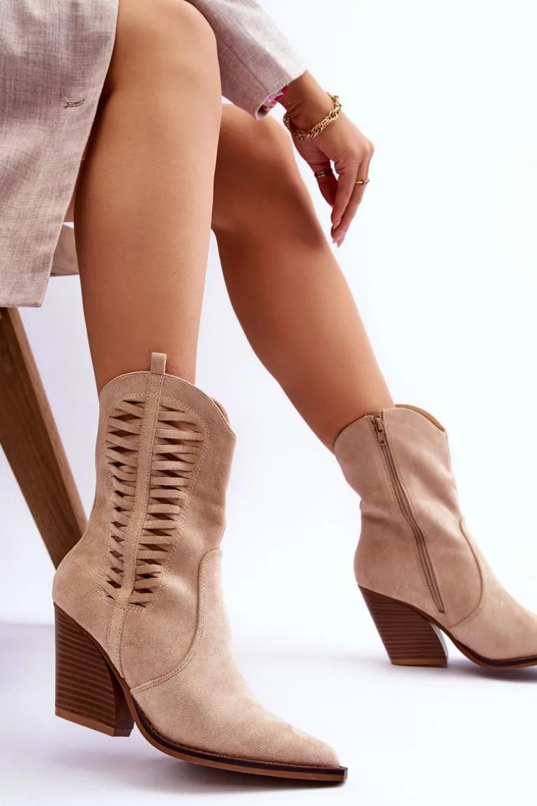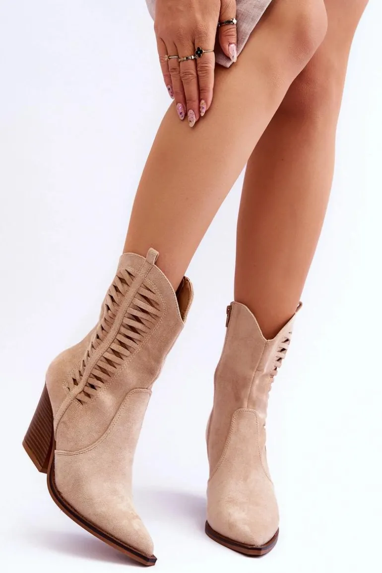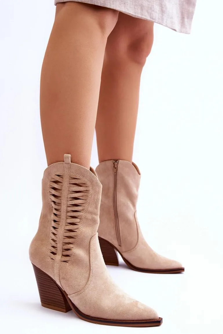 Modne botki z wyższą, nieregularną cholewką posiadają z boku ażurowy wzorek. Zostały wykonane z ekologicznego zamszu. Osadzone na stabilnym obcasie w postaci słupka. Model ten posiada usztywniany zapiętek. Nosek w szpic optycznie wysmukli nogi. Miękka, materiałowa wkładka zapewni wygodne użytkowanie obuwia. Przy wyborze rozmiaru prosimy sugerować się tabelą rozmiarów.