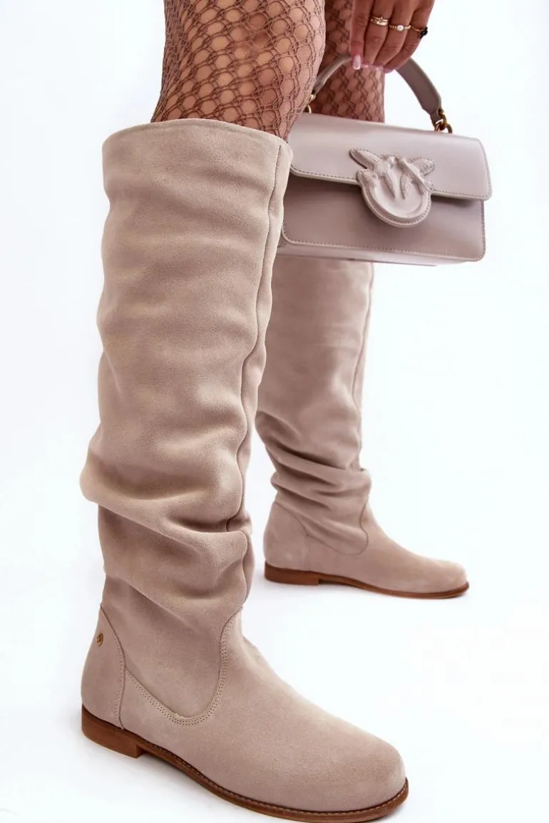 Klasyczne, damskie kozaki zostały wykonane z naturalnych skór z dbałością o szczegóły. Dodatkowo cholewka posiada marszczenia. Model ten jest wsuwany. Kozaki osadzono na płaskim obcasie. Nie posiadają ocieplenia. Zapiętek jest usztywniany. Wkładka miękka i ocieplana, co zwiększa komfort użytkowania. Przy wyborze rozmiaru prosimy sugerować się tabelą rozmiarów.