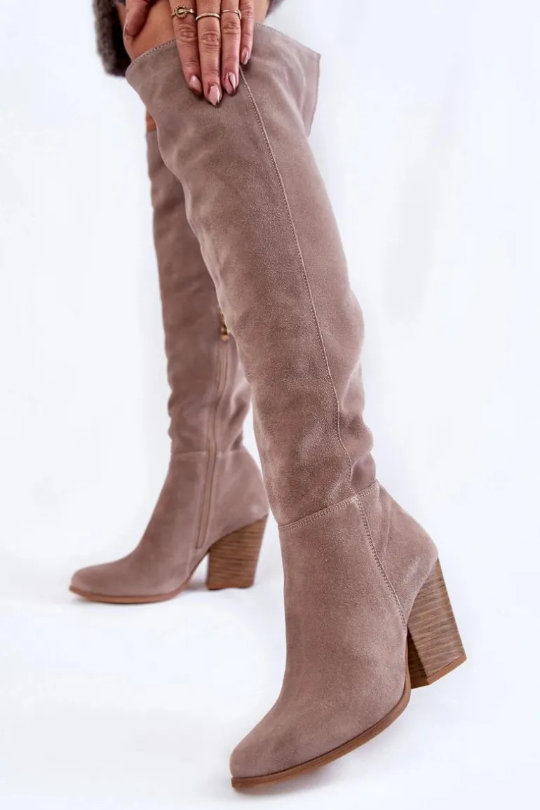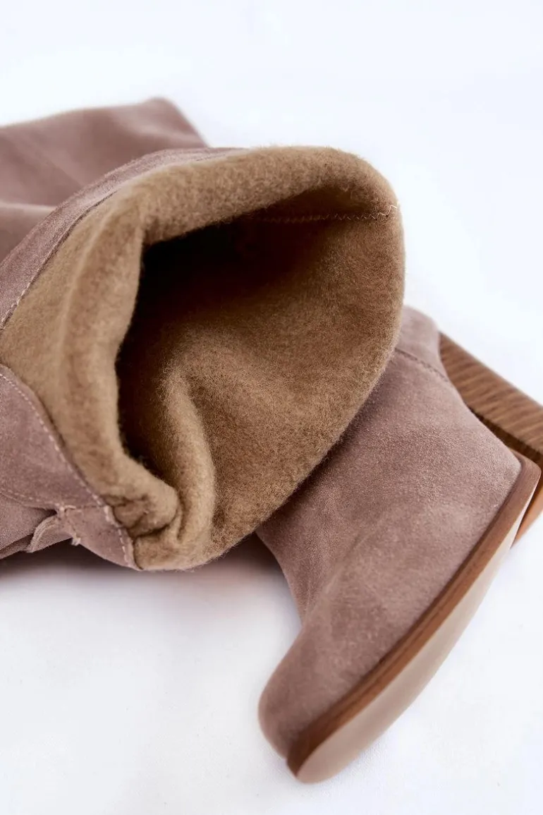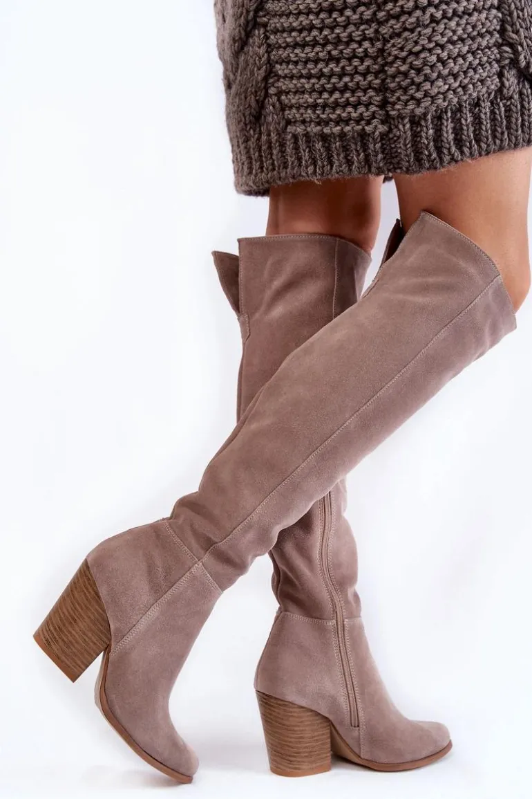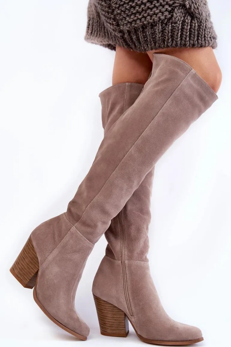 Wyjątkowe kozaki damskie o fasonie muszkieterek. Wysoka cholewka za kolano jest wsuwana i dodatkowo zamykana na suwak. Zapiętek jest usztywniany, co zapewni stabilizację stopy. Model wykonany ze skór wysokiej jakości. Kozaki te zostały wewnątrz ocieplone kocem obuwniczym. Miękka wkładka zapewni komfort podczas użytkowania. Przy wyborze rozmiaru prosimy kierować tabelą rozmiarów.