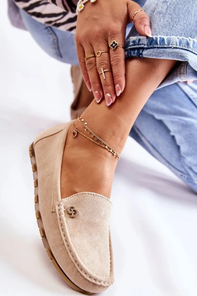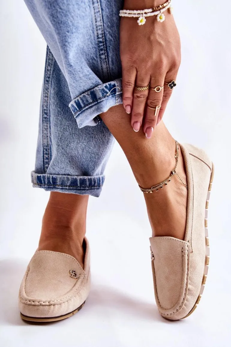 Niezwykle komfortowe mokasyny damskie zostały wykonane z eko zamszu. Wkładka z delikatną perforacją zapewni wygodę podczas użytkowania. Mokasyny dopełnią wiele Twoich stylizacji. Nosek lekko kwadratowy. Osadzone na płaskiej, gumowej podeszwie, która dodatkowo jest antypoślizgowa. Model klasyczny, wsuwany. Buty te posiadają ozdobę w postaci emblematu z dżetami w postaci cyrkonii. Przy wyborze rozmiaru prosimy sugerować się tabelą rozmiarów.