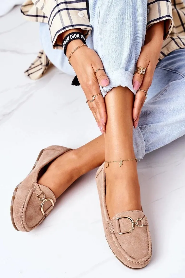 Klasyczne mokasyny damskie wykonane z miękkiego eko zamszu. Buty są niesamowicie wygodne dzięki miękkiej skórzanej wkładce oraz gumowej, antypoślizgowej podeszwie. Ponadczasowy model dopełni wiele Twoich stylizacji! Przy wyborze rozmiaru prosimy sugerować się tabelą rozmiarów.