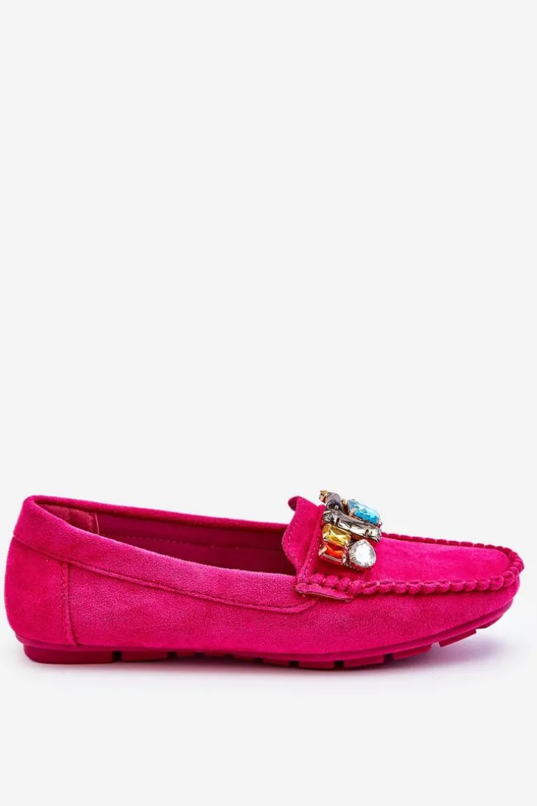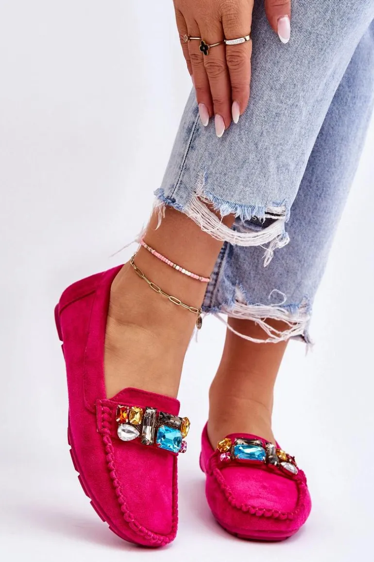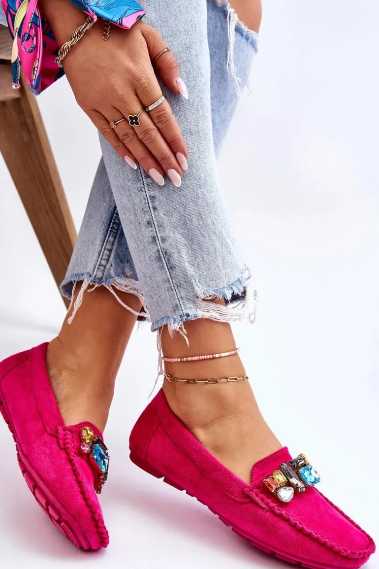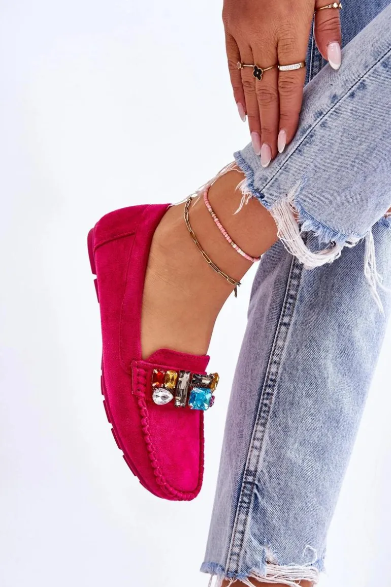 Damskie Zamszowe Mokasyny Z Kryształkami Fuksja Lucille