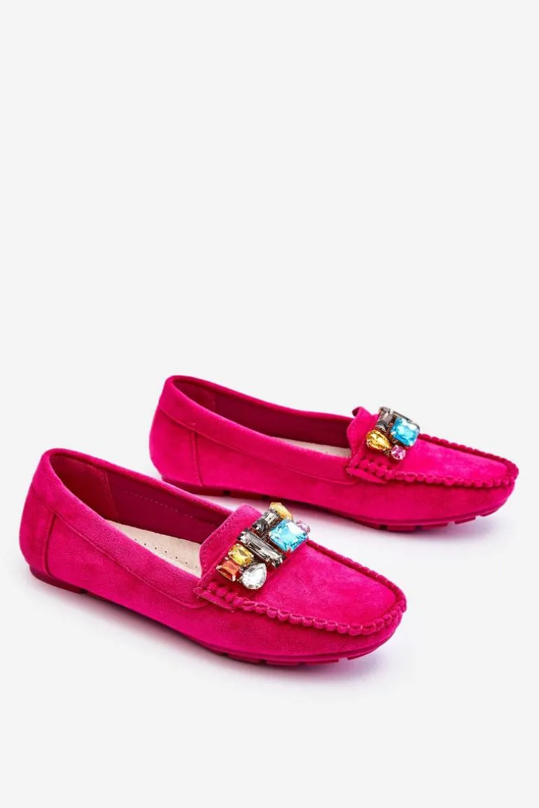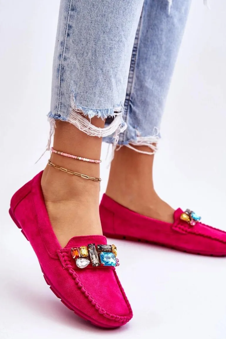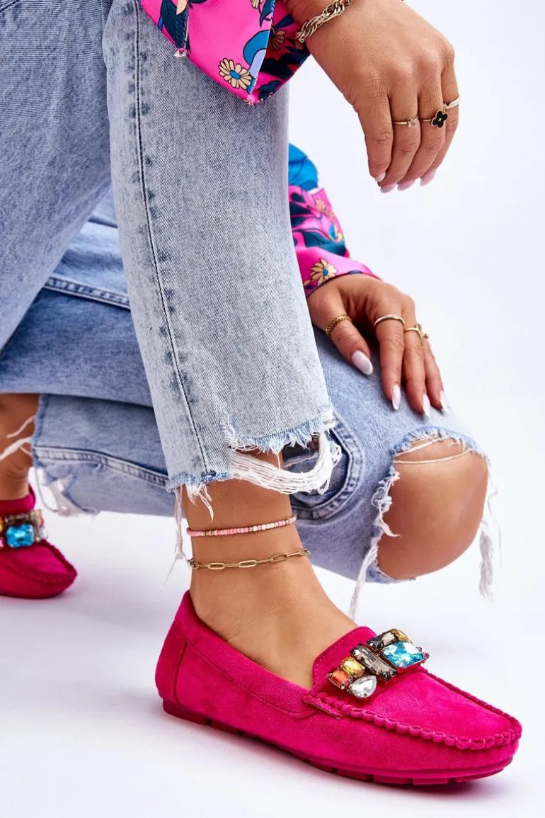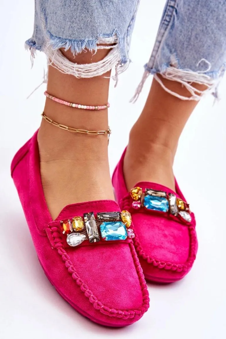 Damskie Zamszowe Mokasyny Z Kryształkami Fuksja Lucille