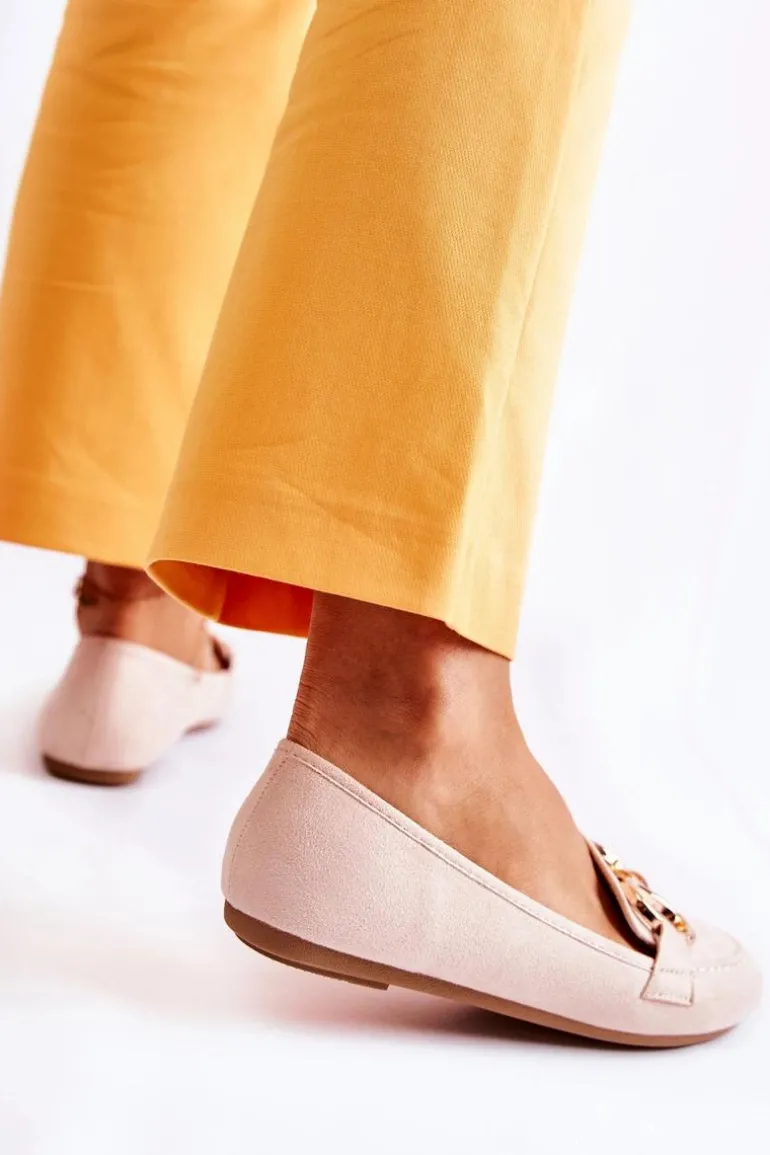 Eleganckie mokasyny zostały wykonane z eko zamszu. Miękka wkładka z perforacją zadba o Twój komfort podczas użytkowania. Wkładka wykonana z eko skóry. Mokasyny sprawdzą się w wielu stylizacjach. Na przodzie znajduje się ozdobny element wykonany z tworzywa sztucznego. Nosek zaokrąglony. Buty osadzone na płaskim obcasie. Przy wyborze rozmiaru prosimy sugerować się tabelą rozmiarów.