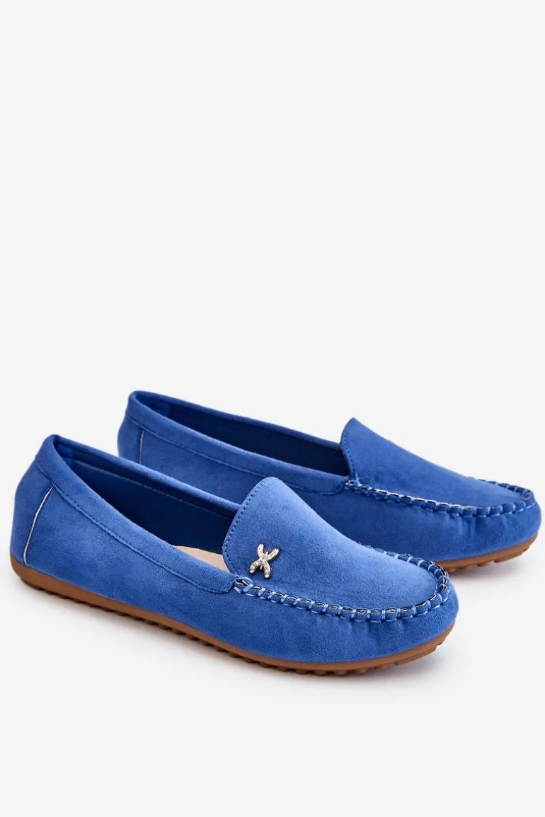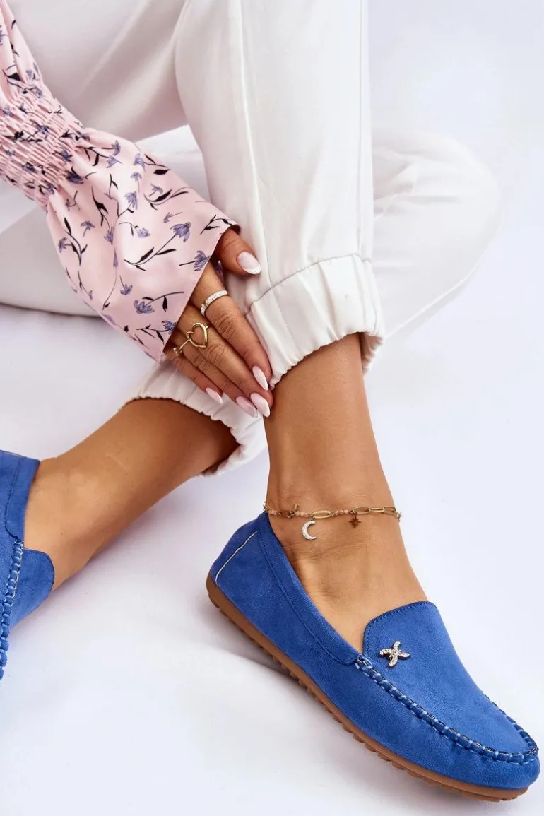Damskie Zamszowe Mokasyny Z Ozdobą Niebieskie Leah