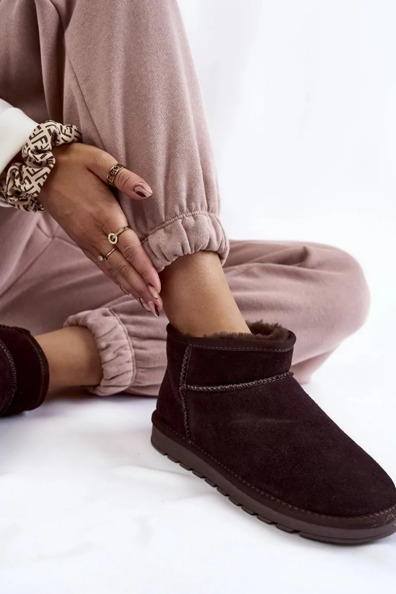 Klasyczne śniegowce idealnie sprawdzą się podczas chłodnych dni. Wykonane z wysokiej jakości naturalnych skór. Wnętrze butów zostało ocieplone grubym futerkiem ekologicznym. Ten klasyczny model dopasujesz do wielu stylizacji. Botki posiadają gumową platformę, która świetnie odizoluje od podłoża i jest dodatkowo antypoślizgowa. Powinnaś mieć ten model w swojej szafie! Przy wyborze rozmiaru prosimy sugerować się tabelą rozmiarów.