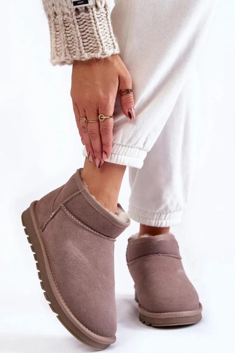 Klasyczne śniegowce idealnie sprawdzą się podczas chłodnych dni. Wykonane z wysokiej jakości naturalnych skór. Wnętrze butów zostało ocieplone grubym futerkiem ekologicznym. Ten klasyczny model dopasujesz do wielu stylizacji. Botki posiadają gumową platformę, która świetnie odizoluje od podłoża i jest dodatkowo antypoślizgowa. Powinnaś mieć ten model w swojej szafie! Przy wyborze rozmiaru prosimy sugerować się tabelą rozmiarów.