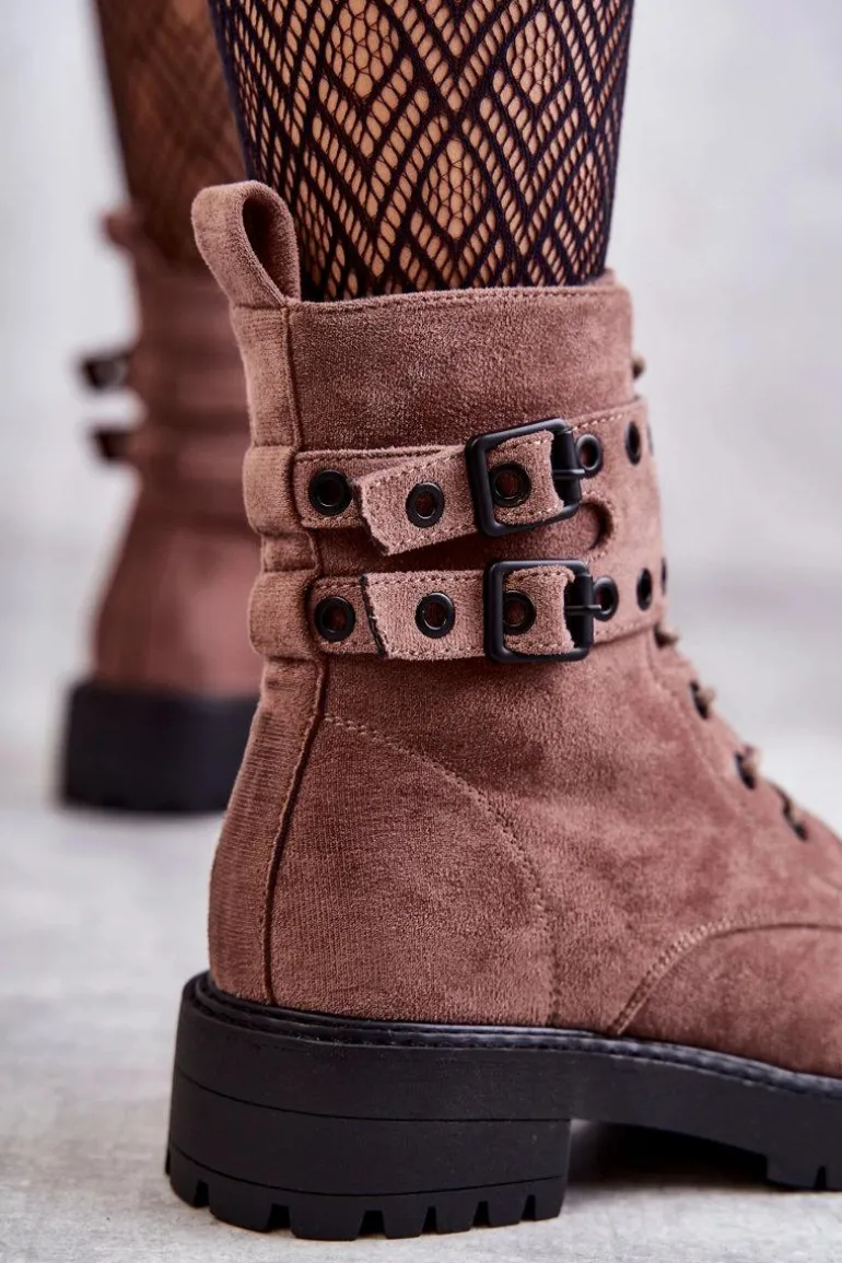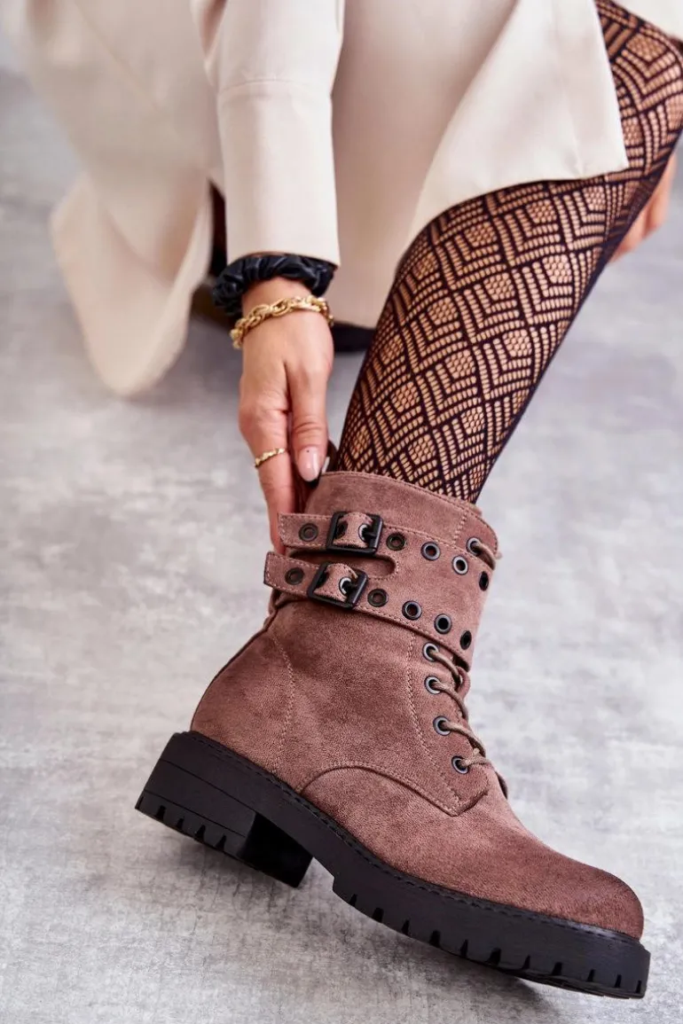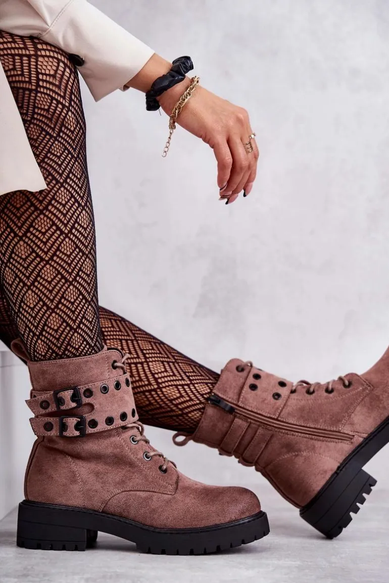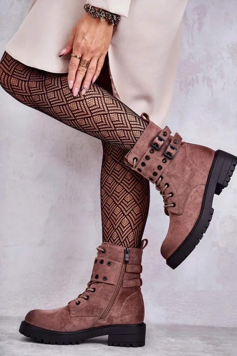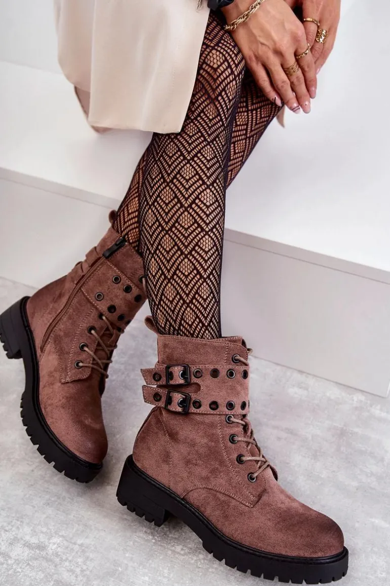 Wyjątkowe botki damskie zostały wykonane z eko zamszu z przecieranym noskiem i piętą. Posiadają suwak na boku cholewki, sznurowanie oraz modne klamry. W środku znajduje się ocieplenie w postaci koca obuwniczego. Buty dodatkowo posiadają usztywniany zapiętek. Świetny model na co dzień do pracy czy na spotkania z przyjaciółmi. Przy wyborze rozmiaru prosimy sugerować się tabelą rozmiarów.
