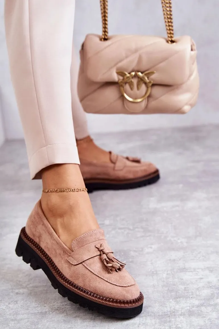 Klasyczne półbuty zostały wykonane z wysokiej jakości zamszowej skóry ekologicznej. Na przodzie charakterystyczne zdobienie w postaci frędzelka. Buty te posiadają platformę oraz płaski obcas. Podeszwa ze żłobieniami świetnie odizoluje od nierównego podłoża. Świetny model do wielu stylizacji! Wygodne, a zarazem modne. Koniecznie musisz je mieć! Przy wyborze rozmiaru prosimy sugerować się tabelą rozmiarów.