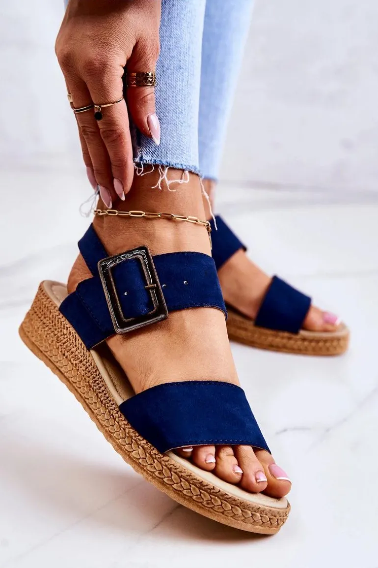 Świetne sandałki damskie wykonane z eko zamszu. Posiadają regulowany pasek zapinany wokół kostki na sprzączkę. Wkładka miękka, wykonana z eko skóry. Buty osadzone na niskim koturnie i delikatnej platformie, które są przyozdobione tłoczonym wzorem oraz brokatem. Model, który będzie pasować do wielu stylizacji. Idealne na lato, przewiewne i wygodne. Koniecznie sprawdź także pozostałe sandały marki Big Star dostępne w naszej ofercie! Podczas wyboru rozmiaru prosimy sugerować się tabelą rozmiarów.
