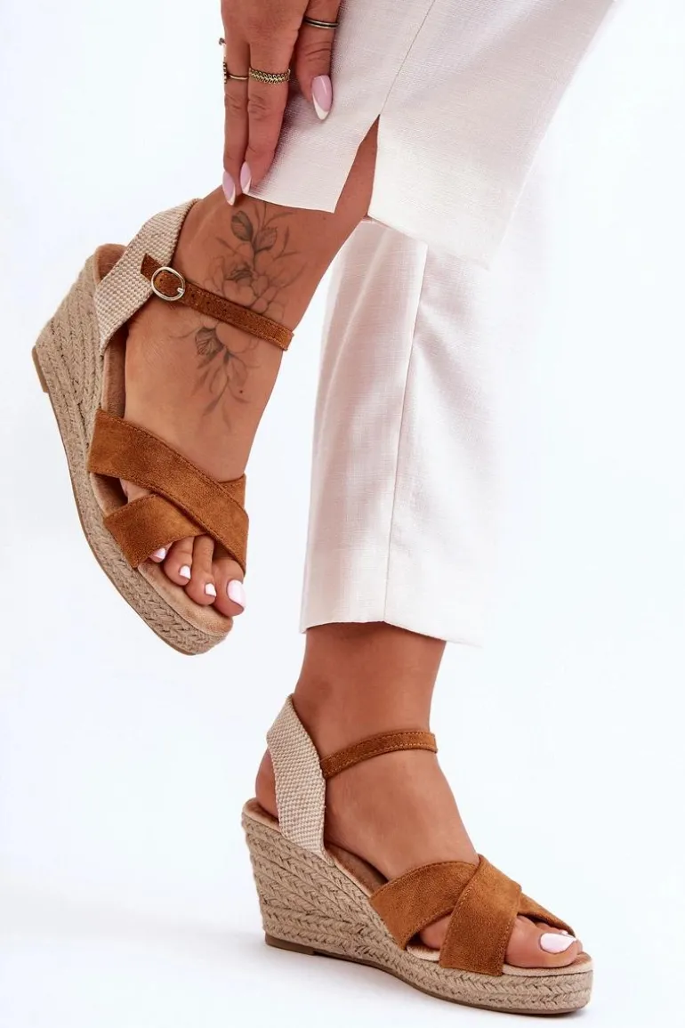 Klasyczne sandały na modnym, plecionym koturnie i platformie zostały wykonane z połączenia tkaniny oraz eko zamszu. Wkładka jest niezwykle miękka i wykonana także z eko zamszu. Buty posiadają zapięcie na regulowany pasek ze sprzączką. Podeszwa w tych sandałkach jest wykonana z tworzywa sztucznego. Przy wyborze rozmiaru prosimy sugerować się tabelą rozmiarów.