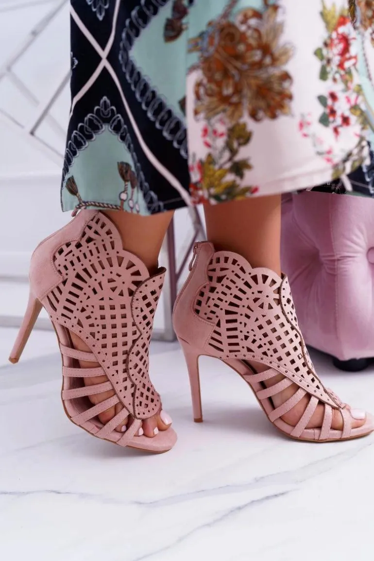 Damskie Zamszowe Sandały na Szpilce Pudrowy Róż Viviane