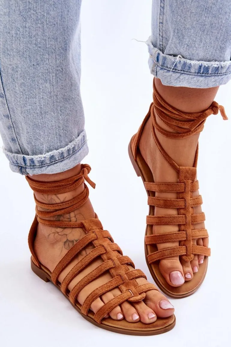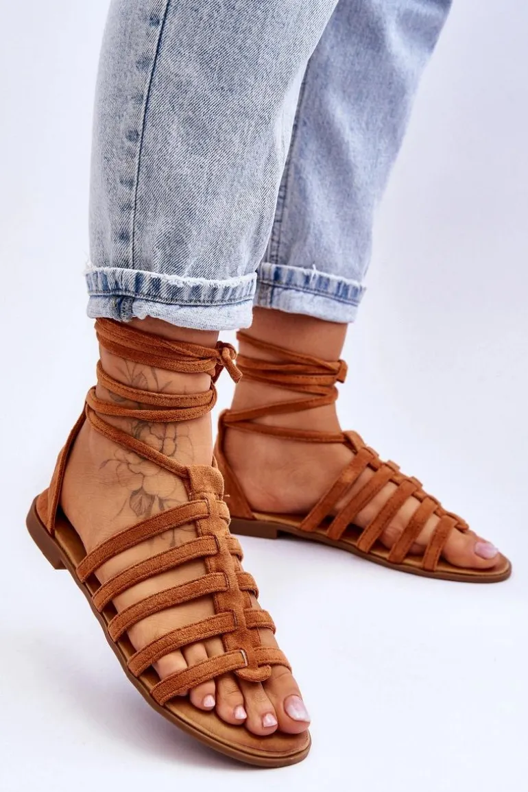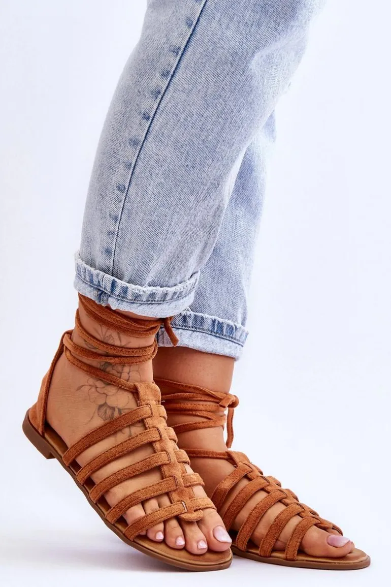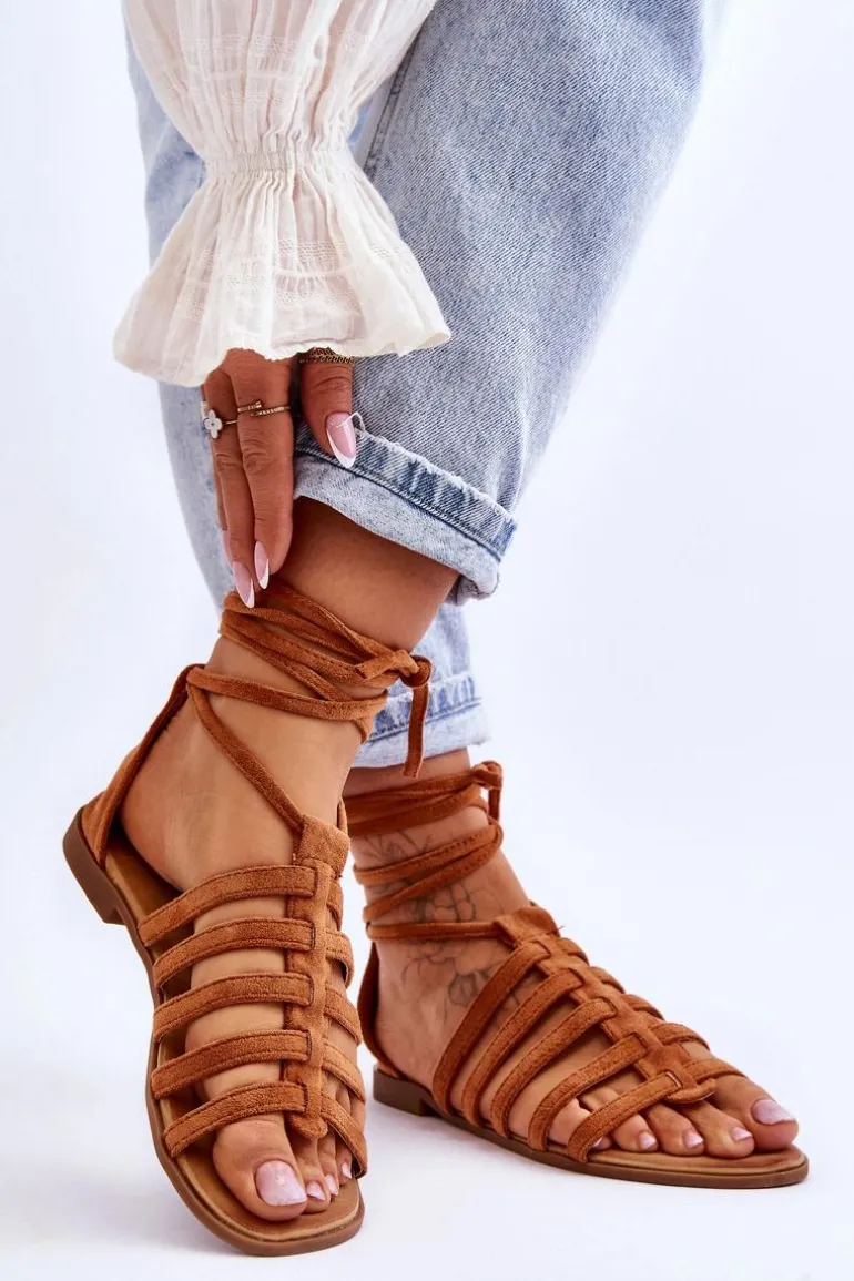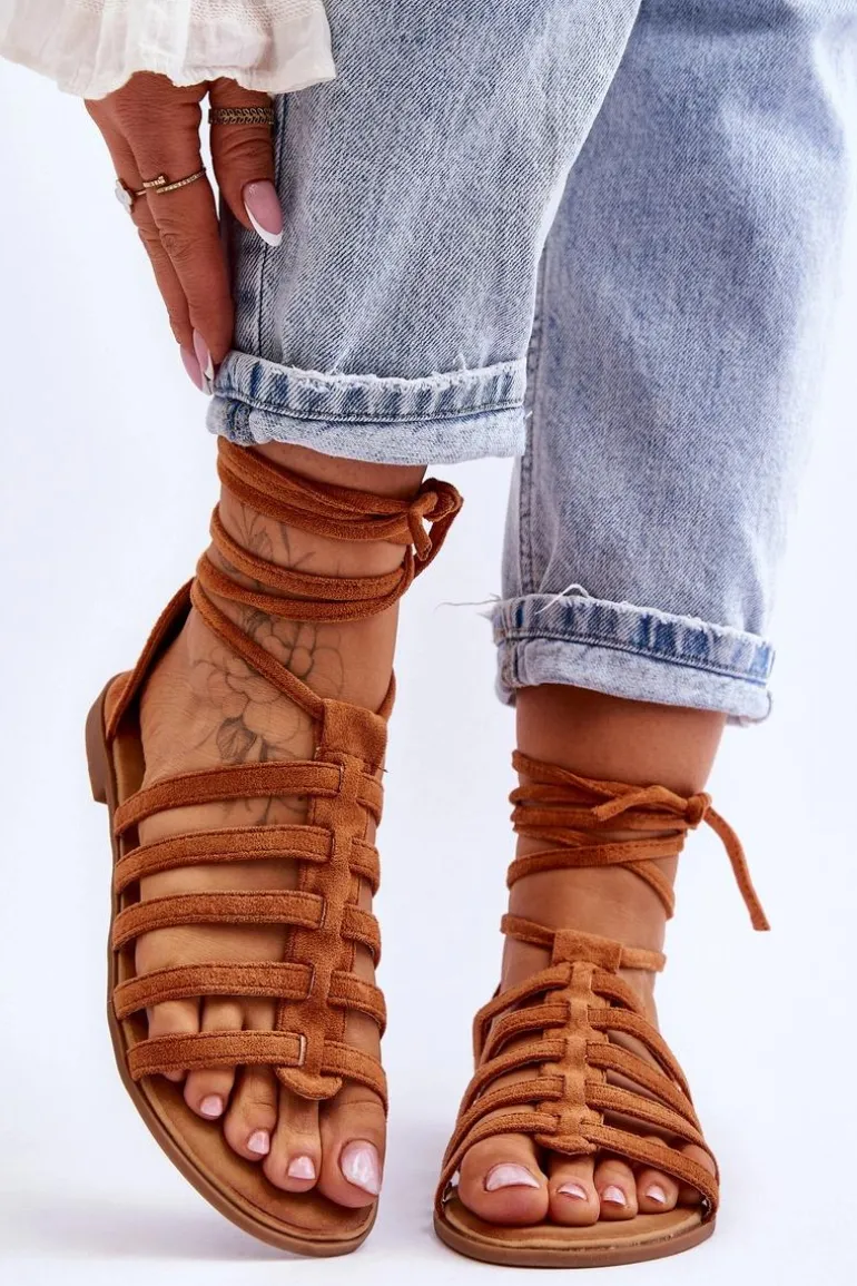 Damskie Zamszowe Sandały Rzymianki Camel Sempre