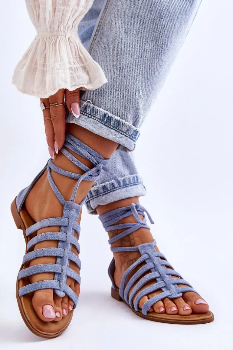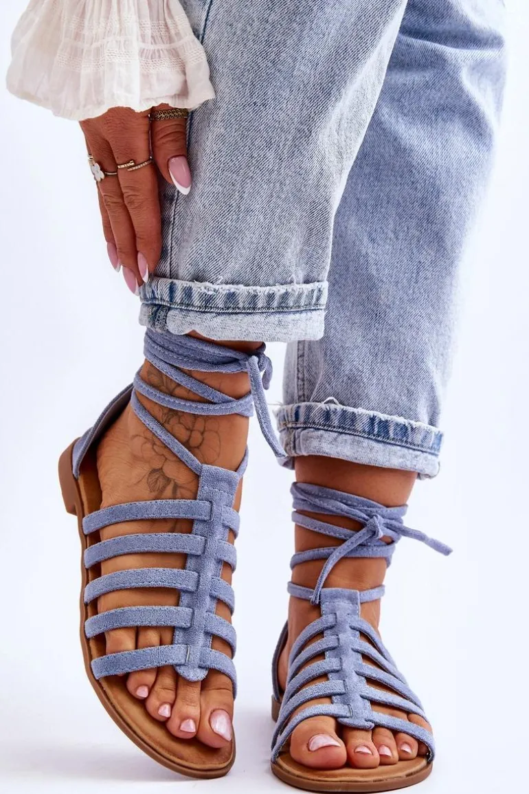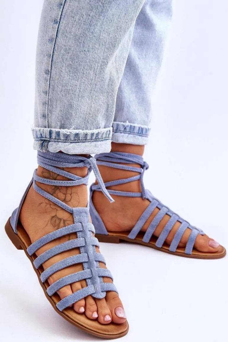 Damskie Zamszowe Sandały Rzymianki Niebieskie Sempre