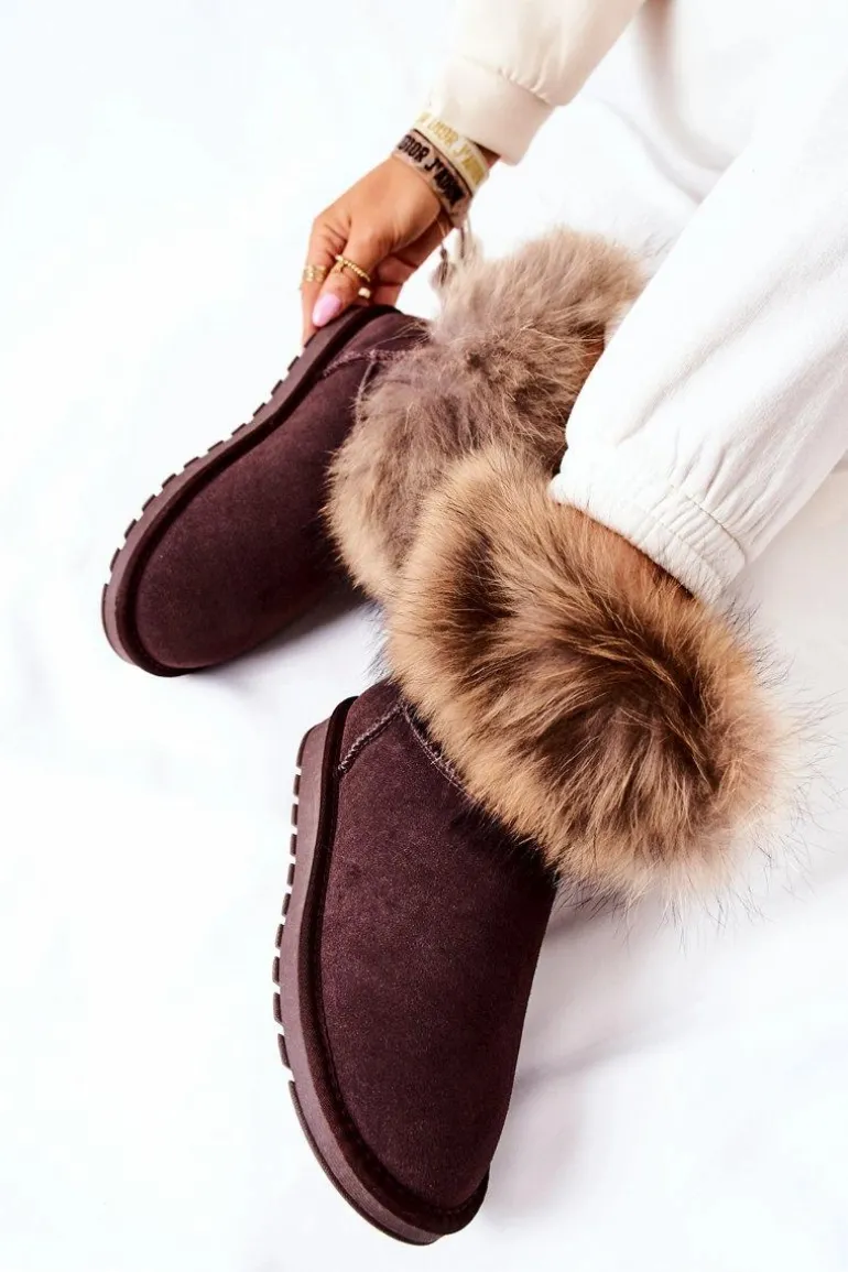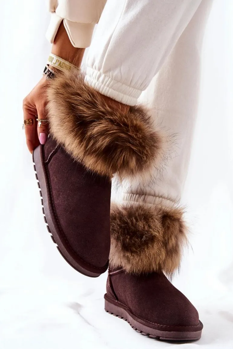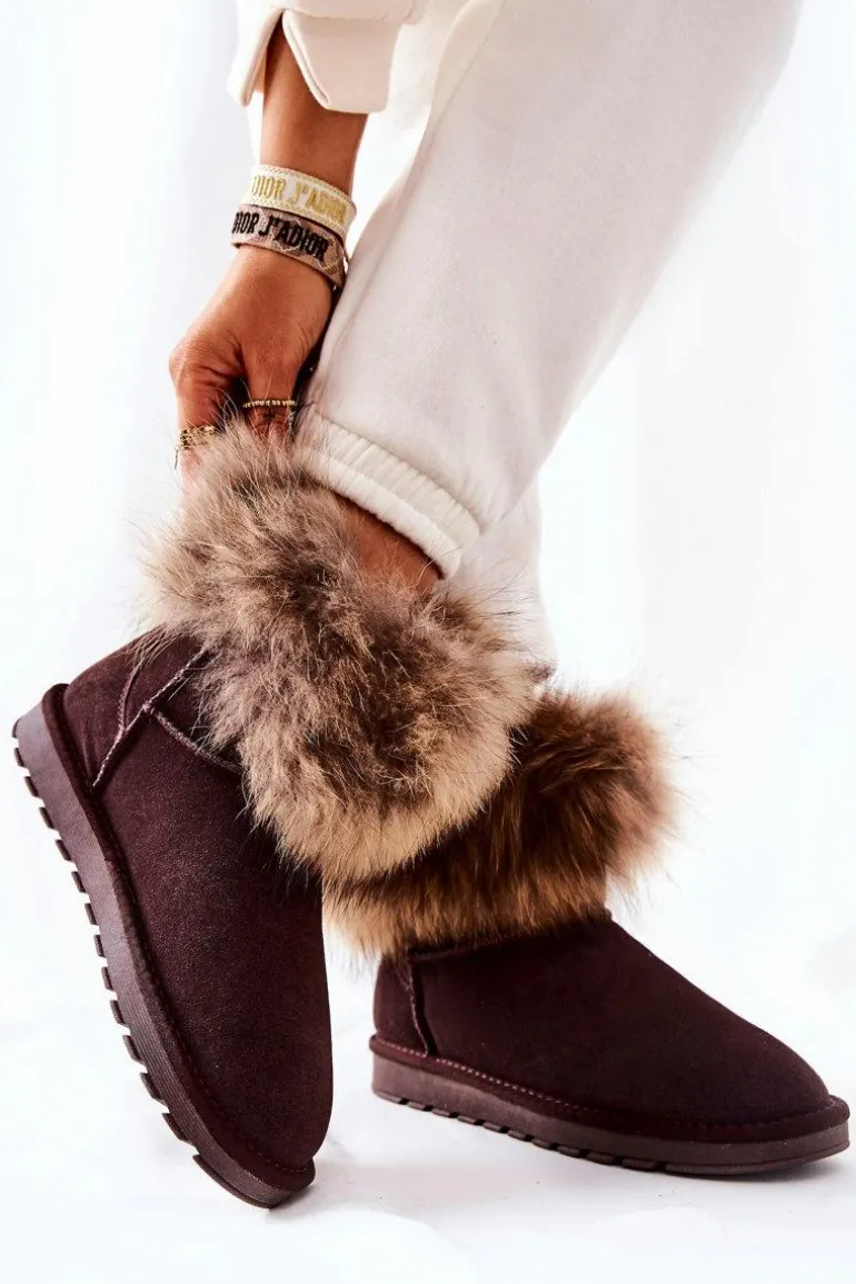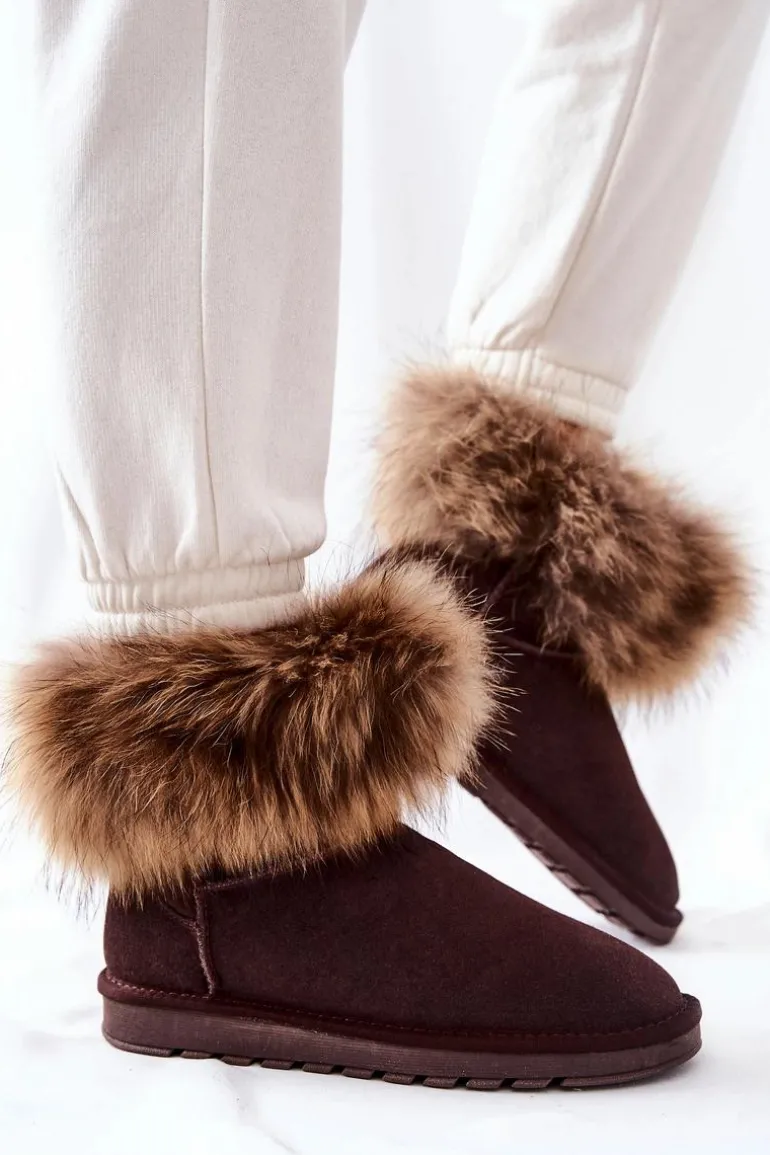 Śniegowce to idealny wybór na chłodne dni. Buty wykonane są z naturalnej skóry zamszowej. Futerko wokół kostki jest naturalne natomiast wnętrze zostało ocieplone grubym eko futerkiem. Koniecznie sprawdź całą naszą kolekcję śniegowców! Przy wyborze rozmiaru prosimy kierować tabelą rozmiarów.