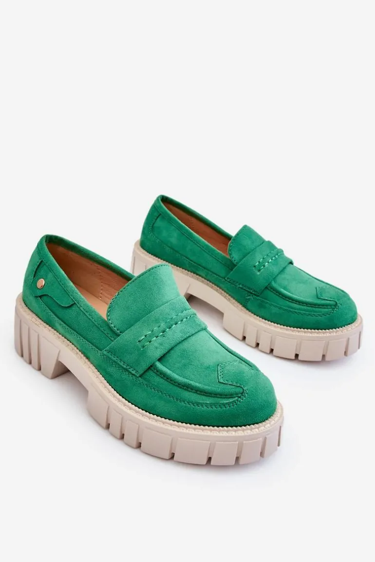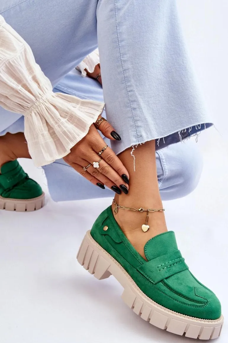 Damskie Zamszowe Wsuwane Półbuty Zielone Fiorell