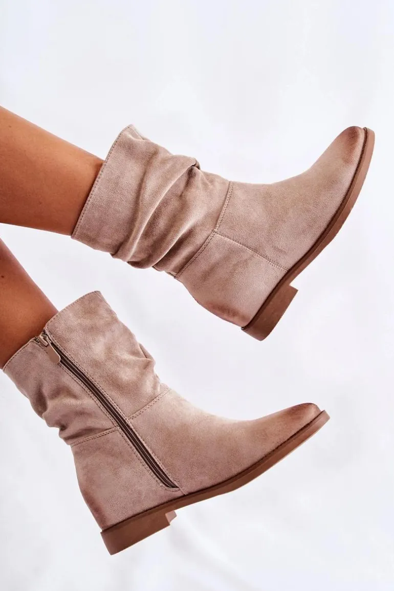 Botki damskie posiadają wysoką, lekko marszczoną cholewkę za kostkę. Zamykane na suwak. Wykonane z przyjemnego w dotyku eko zamszu. Wkładka została wykonana z tkaniny. Zapiętek usztywniany. Na nosku oraz z tyłu cholewki znajdują się modne przetarcia. Idealne na sezon wiosenno-jesienny. Model ten będzie świetnie prezentował się z jeansami czy zwiewną spódnicą. Przy wyborze rozmiaru prosimy sugerować się tabelą rozmiarów.