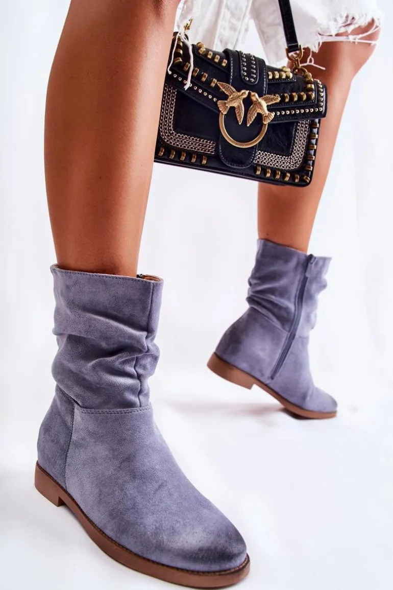 Damskie Zamszowe Wysokie Botki Niebieskie Venis