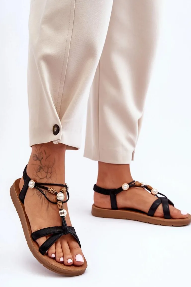 Wygodne, błyszczące damskie sandały ozdobione koralikami. Idealne na upalne dni! Delikatna platforma świetnie sprawdzi się także podczas wycieczek po piaszczystej plaży czy spacerze po mieście. Wykonane z materiału tekstylnego. Koniecznie sprawdź pozostałe modele damskich sandałek! Przy wyborze rozmiaru prosimy sugerować się tabelą rozmiarów.
