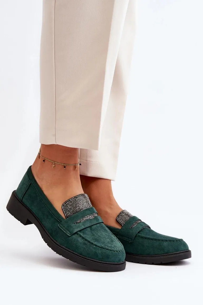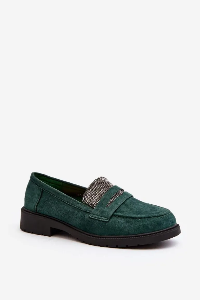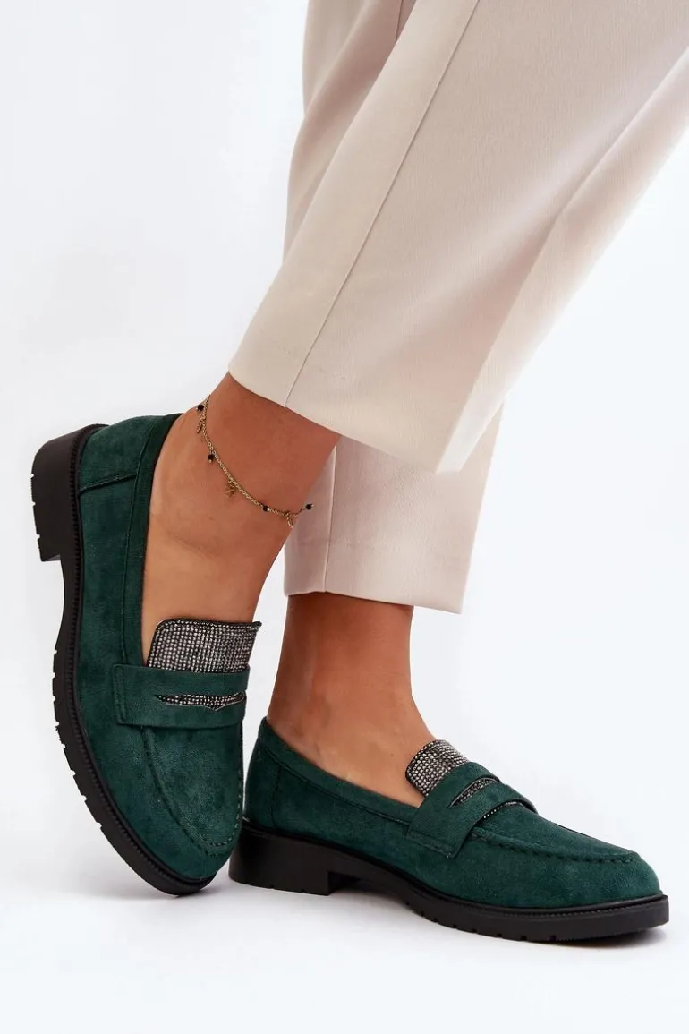 Damskie mokasyny zostały wykonane z miłego w dotyku eko zamszu. Osadzone na płaskim obcasie. Ozdobione małymi, błyszczącymi cyrkoniami. Miękka, eko skórzana wkładka zapewni wygodę użytkowania. Noski zaokrąglone. Ten stylowy fason dopasujesz do wielu stylizacji! Koniecznie powinnaś je mieć! Przy wyborze rozmiaru prosimy sugerować się tabelą rozmiarów.