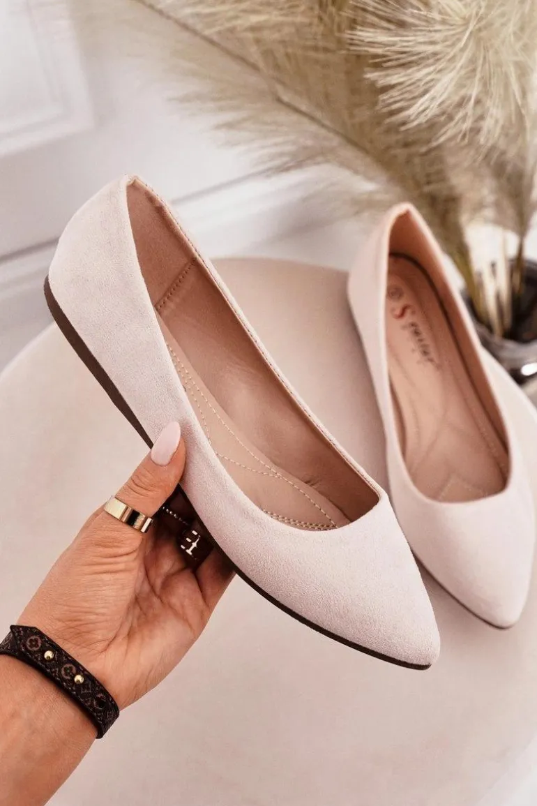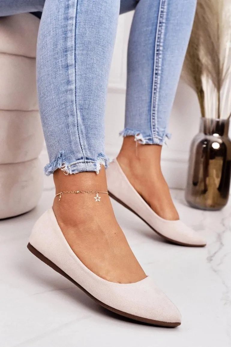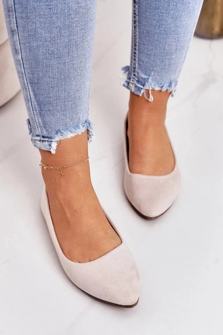 Delikatne Baleriny W Szpic Zamszowe Beżowe Dermeno