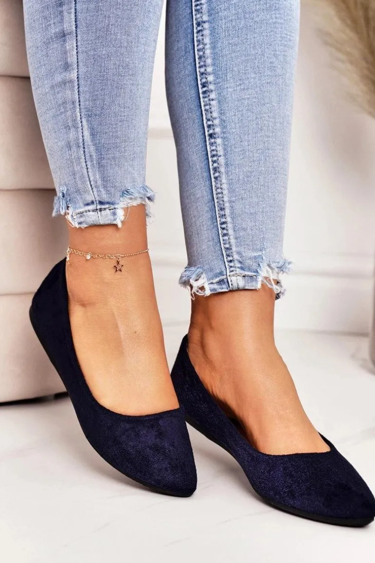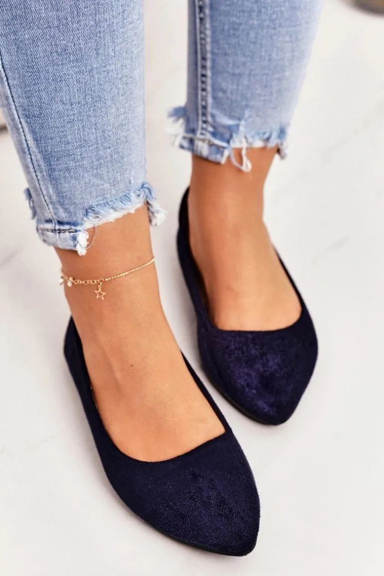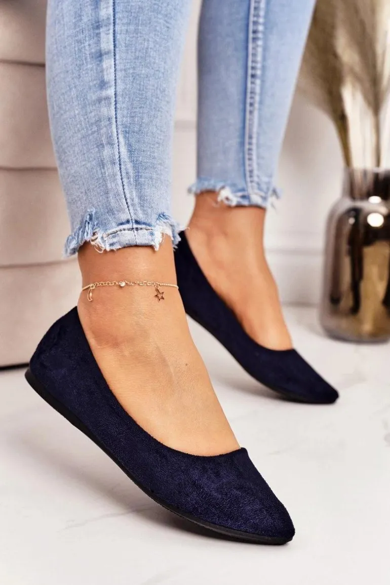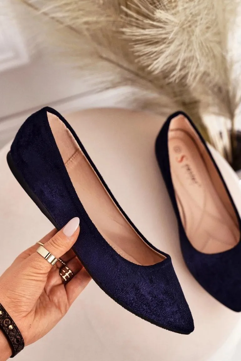Delikatne Baleriny W Szpic Zamszowe Granatowe Dermeno
