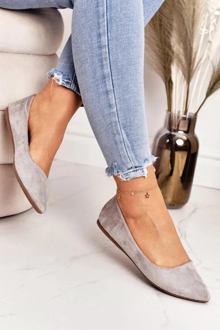 Delikatne Baleriny W Szpic Zamszowe Szare Dermeno